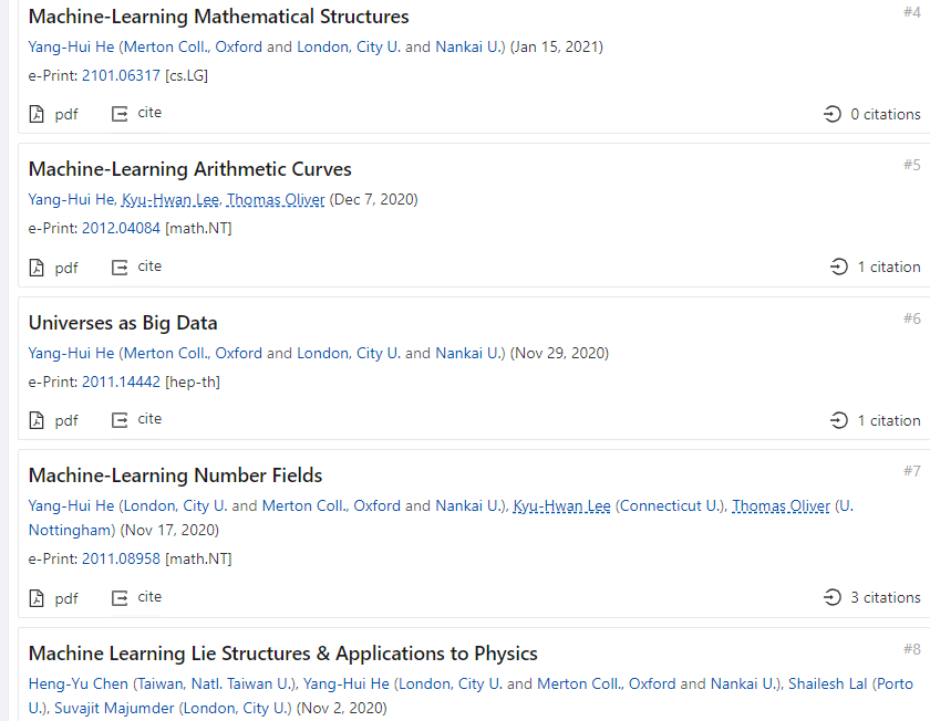 김민형 교수와 쓴 "Learning Algebraic Structures: Preliminary Investigations" 논문을 읽다가 이 사람에 대해서 찾아봤는데 수학, 특히 대수기하나 Lie군 등을 ML 을 이용하여 classification 하고 배우게 하는 그런 일들을 하고 있던데 대단하다.