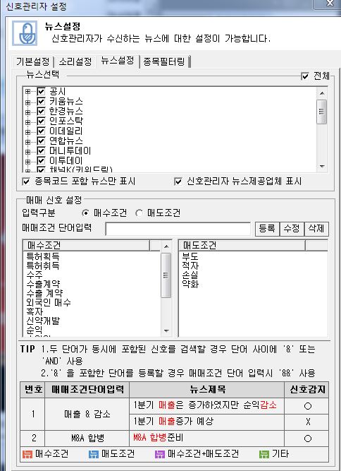 그렇게 많은 숫자들이 실시간으로 움직이는 기술력도 감탄스러운데 뉴스 항목에다 관심단어를 등록하면 그 단어가 포함된 뉴스가 뜰 때마다 알림이 온다. 이게 다 뭔지 마치 내가 순식간에 미래로 온 것 같은 기분... 생긴건 위도우98인게...