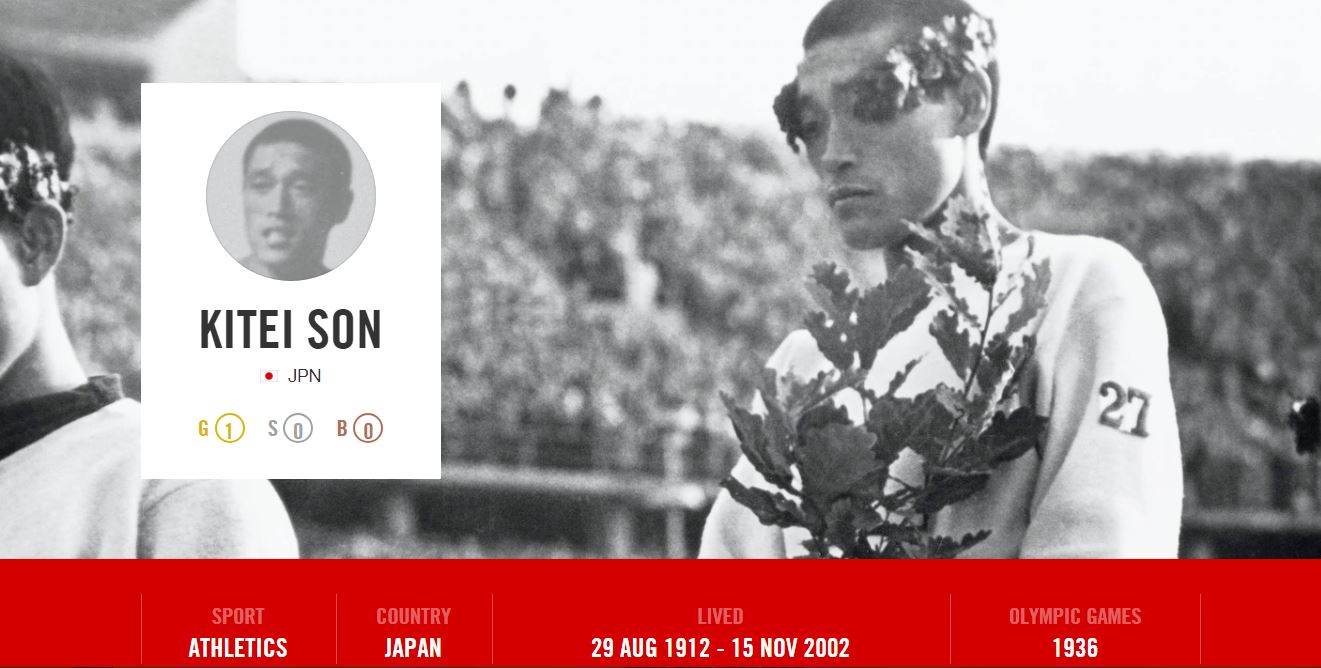 그러나 세계 신기록에, 우승까지 차지한 손기정 선수의 표정은 어둡기만 했습니다. 당시 우리나라는 일제 치하에 있었기 때문입니다. 당시 손기정 선수는 일본의 국기를 달고 손 기테이(Son Kitei, そん きてい) 라는 이름으로 출전해야만 했습니다. 올림픽 시상대에서 일장기가 휘날렸고, 손기테라는 이름과 함께 JAPAN이라는 문구가 새겨진 전광판 아래서 손기정 선수는 묵묵히 고개를 숙였습니다.