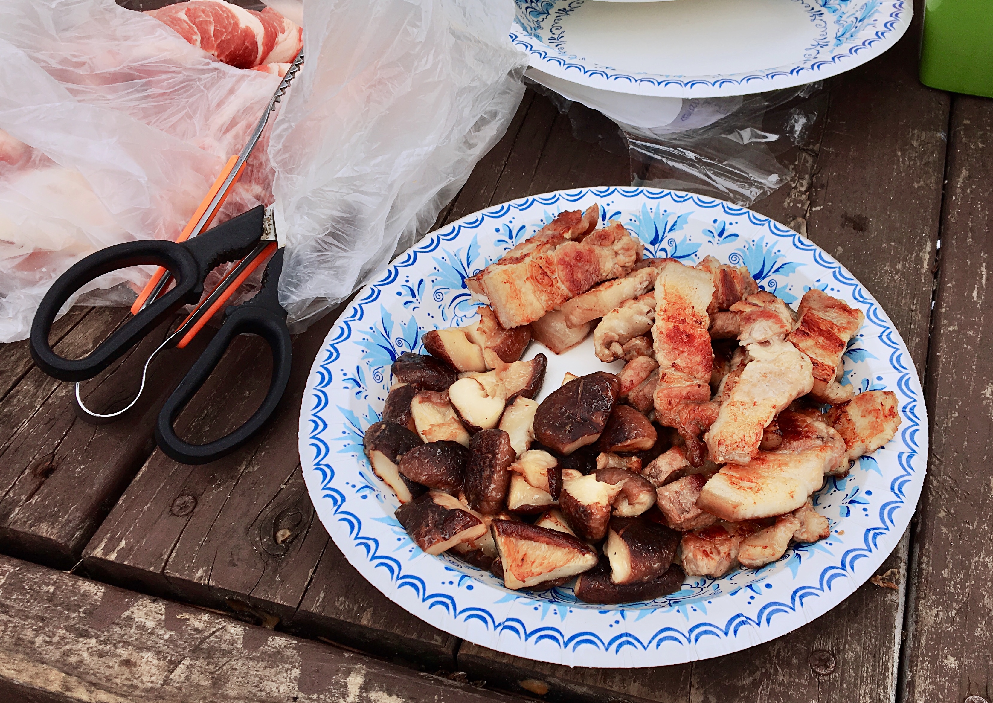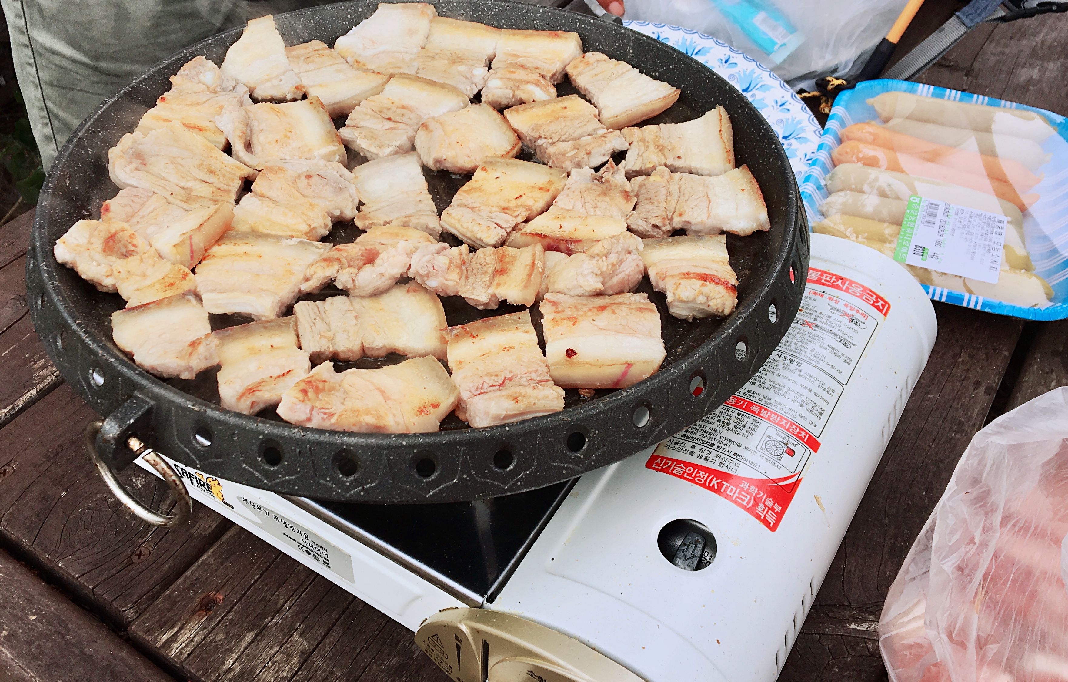 내리자 마자 고기 부터 굽기~!!