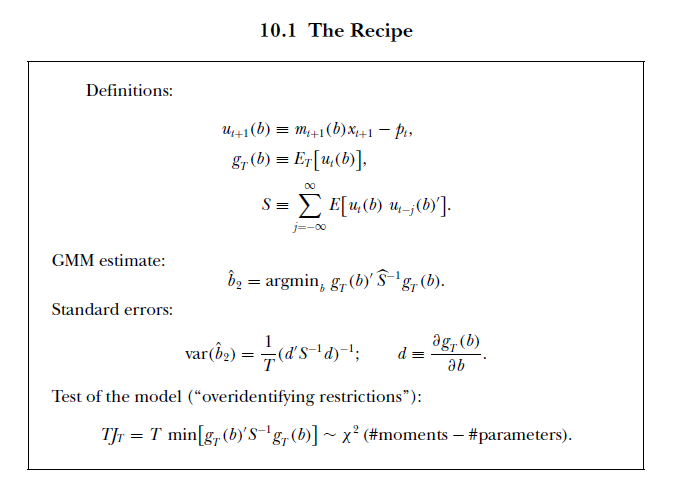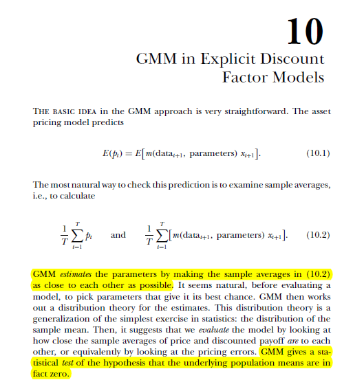 자 이제 본격적인 GMM 에 대해서 알아보자. Cochrane 의 asset pricing 책 chapter 10 의 내용이다.