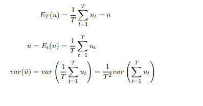 1 ) u_t 가 stationary 즉 Var(u_1) = Var(u_2) = ... = Var(u_T) 그리고 uncorrelated 인 상황 Cov(u_t, u_{t+i})=0.