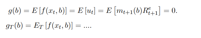 즉 예를 들어 p=E(mx) 공식을 생각한다면 discount factor 에 "b" 라는 vector of an unknown parameter 를 도입한다.