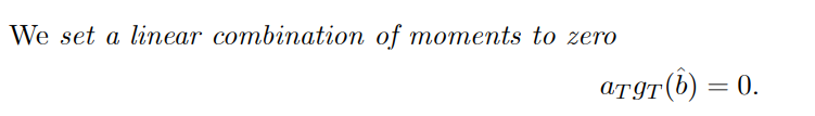 어떤 a_T 를 잡아야 하는가? ANS : Minimize sigma(b_T) ! a= d S^{-1} 이러면 GMM 공식이 많이 간단해진다. [다른 방식으로는 W matrix[Weight matrix] 를 도입하여 구하기도 한다.]