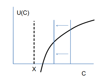 즉 내 재정상태가 좋아서 소비가 늘어났을 때 소비가 감소하는 방향으로 가지 않는다는 것을 표현한게 Habit Utility function 이다. 이것을 수학적으로 나타내면 (C_t)^{1-\gamma} 형태가 된다 그래프로 보면 대략