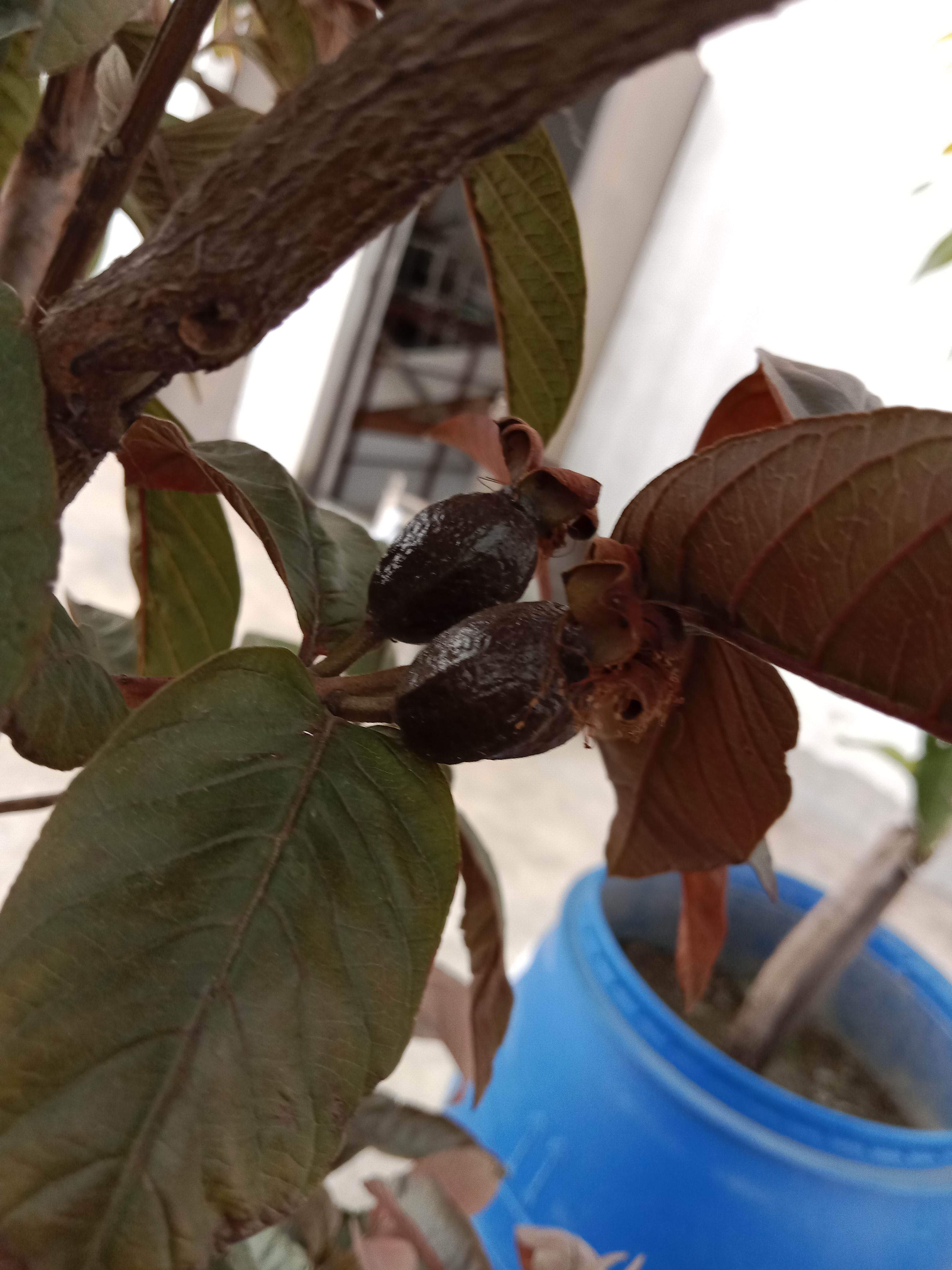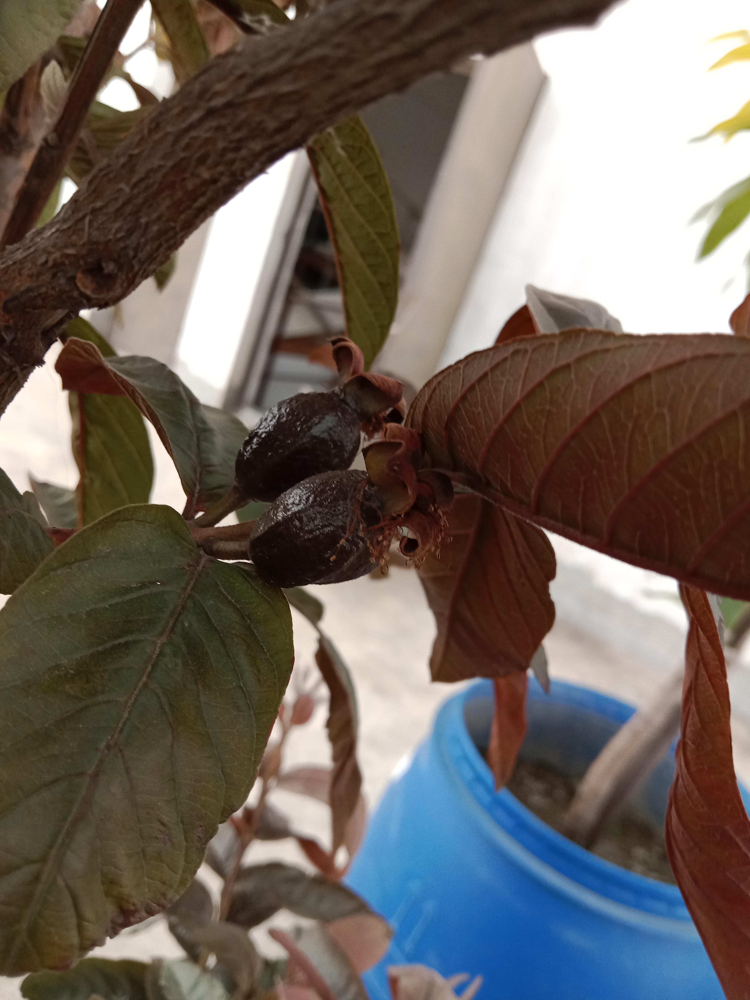 내 구아바 나무의 첫 번째 구아바. 모두가 구아바를 먹도록 초대받았습니다