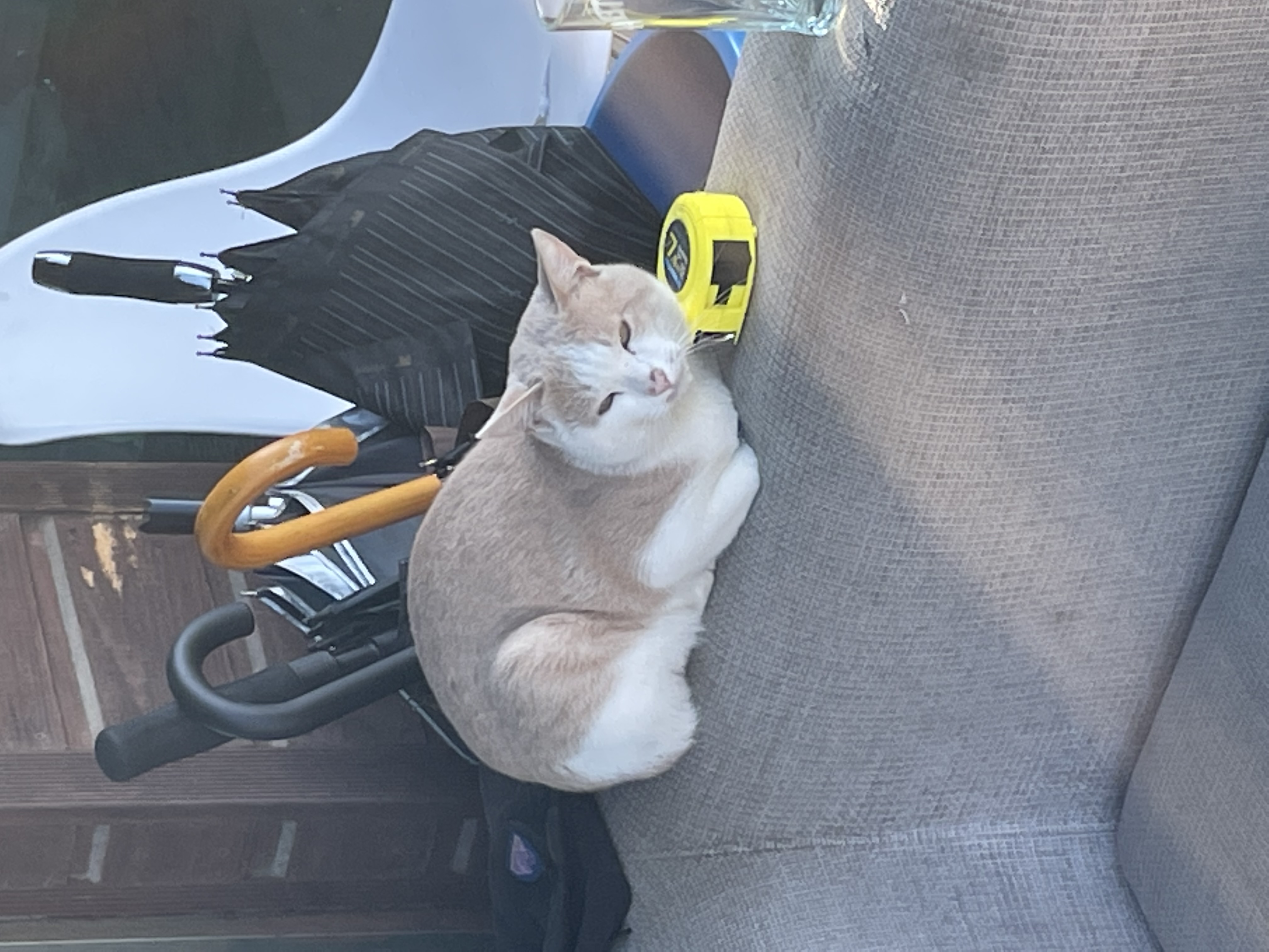At first, I thought it was a cat doll, but when I looked closely, I was surprised to see it was alive.