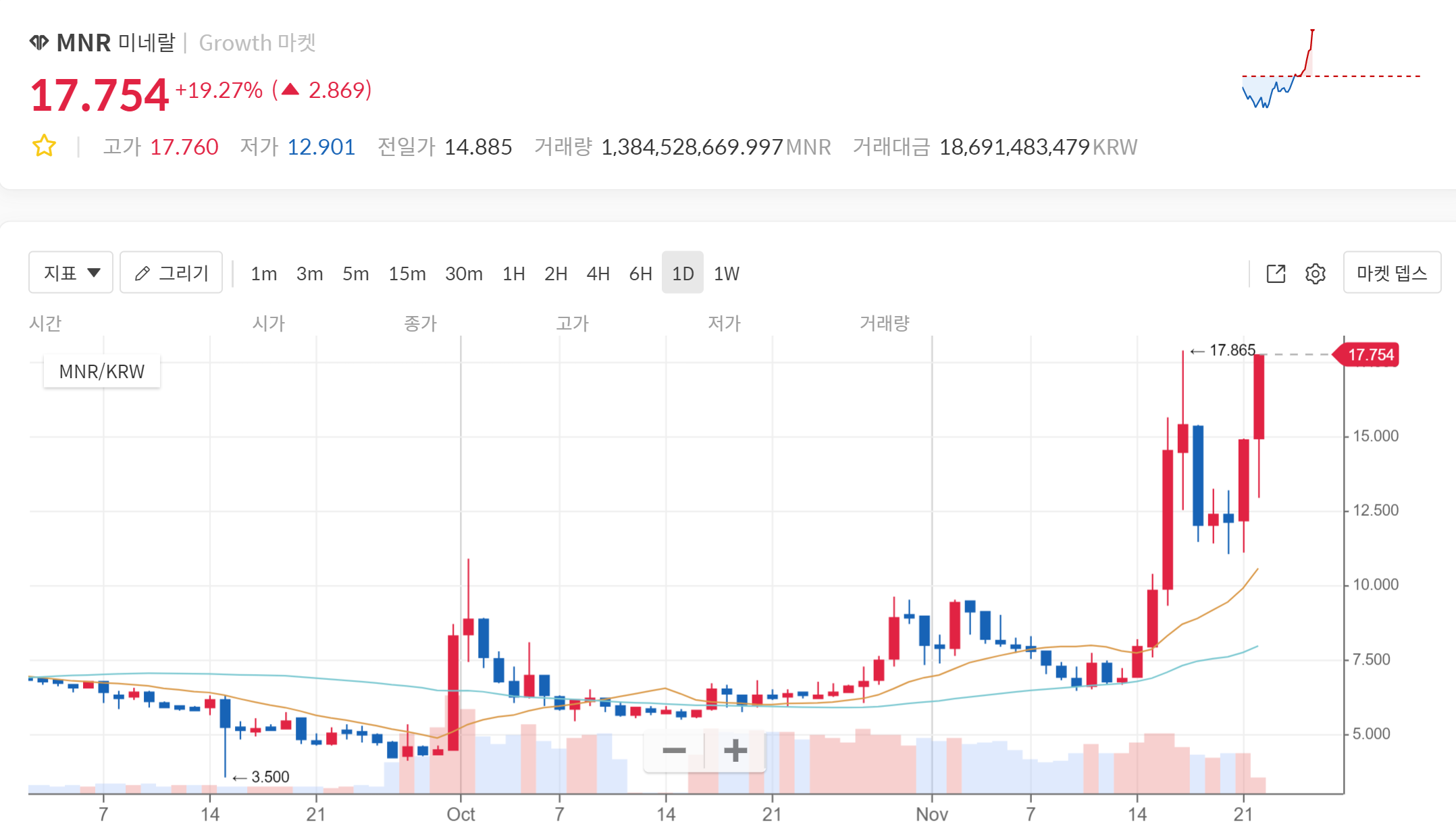 미네랄chunseungho (78)in #krsuccess • 4 years ago (edited) 미네랄 혼자 순항중. 26일 행정심판 심리에서 나올 뉴스전까지는 일단 오르지 않을까 생각한다. 그 다음엔, 해외출시가 되어야 더 날아가든지 아니면 다시 6원으로 돌아가든지 할 듯. #mnr