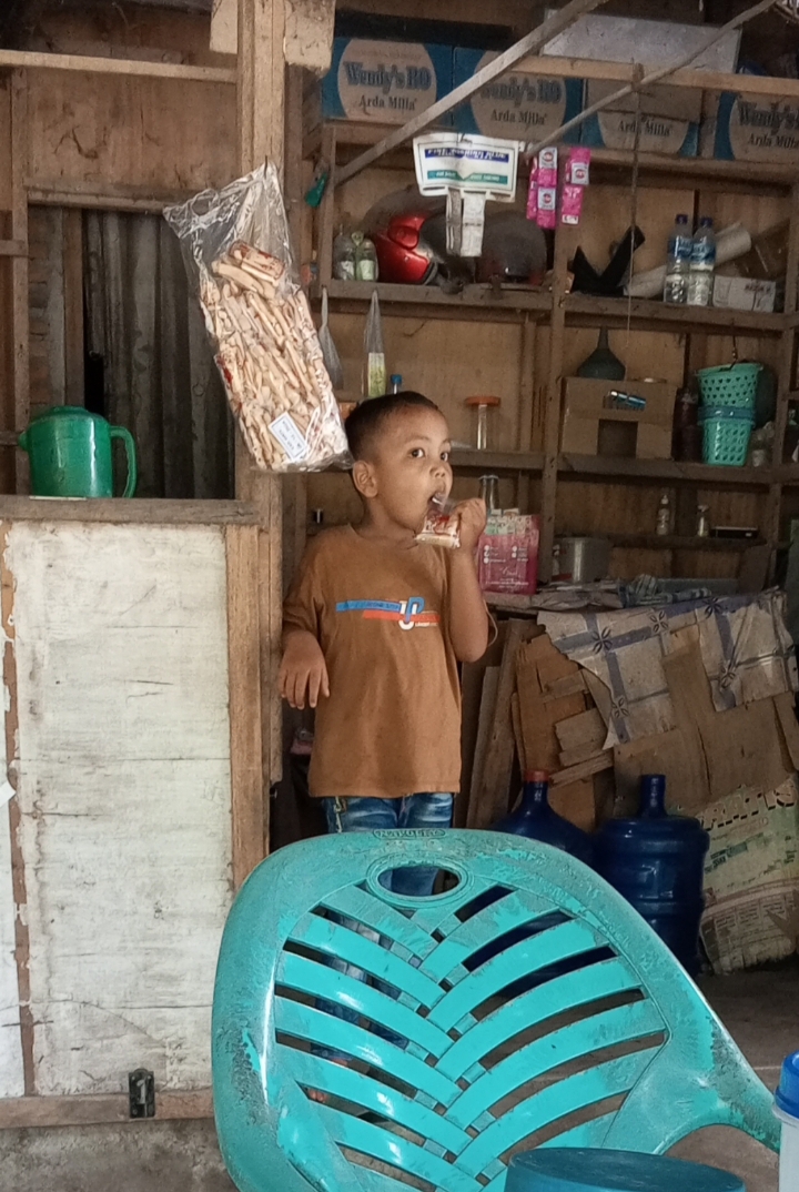 A small boy appeared to be pensive in front of a snack stall. I kept watching the boy who was standing and not moving at all. His eyes were sharp like laser beams shooting out. So what exactly is he looking at? Nobody knows, especially tempeh.