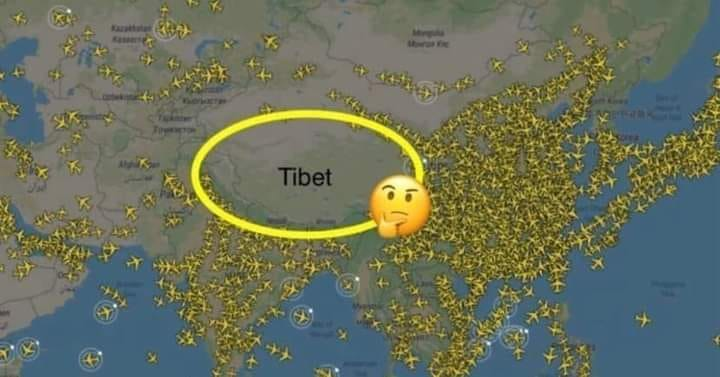 If you look at the aircraft radar system, you will see that there are many planes flying around the world, but there are no planes in the Tibet region of China. Do you know why planes don't fly over Tibet, even though it's a short flight to the airports around Tibet?