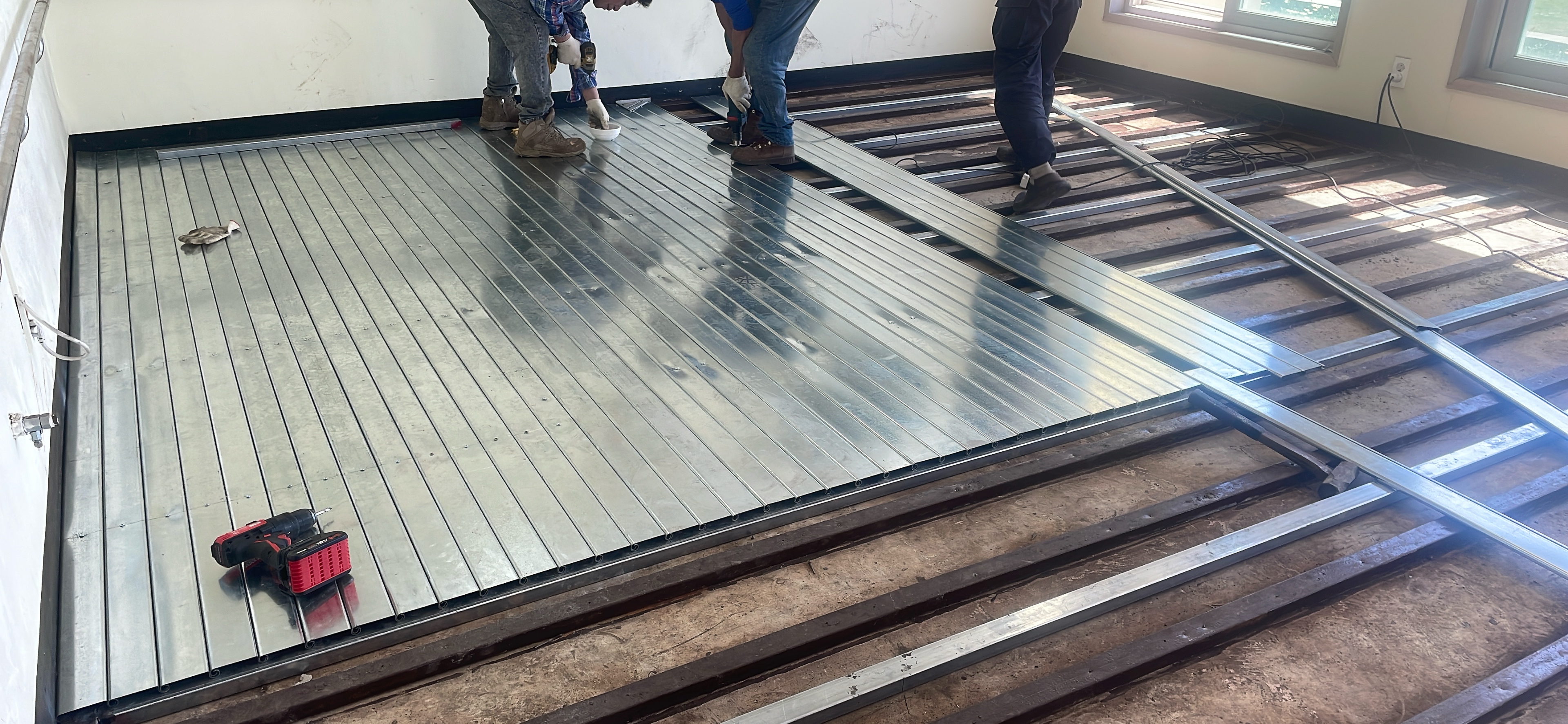 처음엔 공사는 하루에 끝낼 예정이었지만 바닥을 뜯어놓고 보니 공사 범위도 넓었고 예상치 못한 난방 배관도 터뜨리고.. 도저히 하루가 아니라 이틀에도 어렵다 생각이 들어서 업자분들 사이에 장비들고 함께 들어갔습니다.