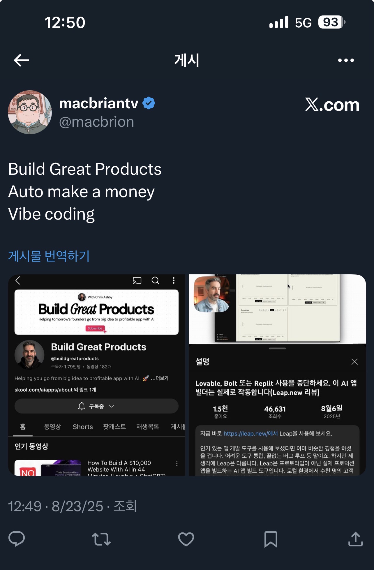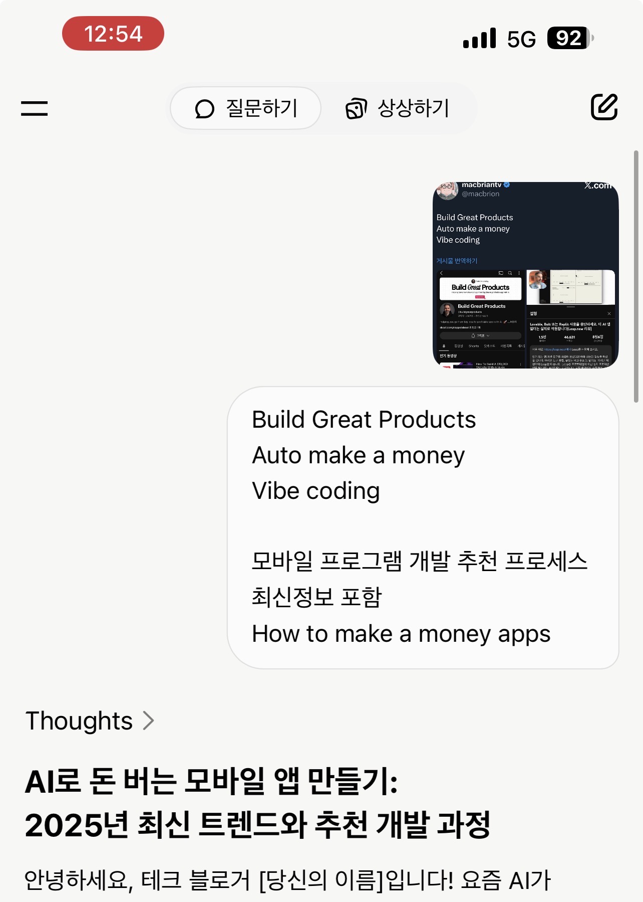 안녕하세요, 테크 블로거 맥브라이언 입니다! 요즘 AI가 모든 걸 바꿔놓고 있죠? 최근 X(트위터)에서 본 @macbrion 님의 포스트가 눈에 띄었어요. “Build Great Products, Auto make a money, Vibe coding”이라는 제목으로, AI를 활용해 훌륭한 제품을 만들고 자동으로 돈을 버는 ‘바이브 코딩’ 스타일을 강조하더라고요. 이 포스트는 스쿨닷컴의 ‘AI App Builders Academy’ 커뮤니티를 소개하는데, 크리스 아바드(Chris Abad)가 운영하는 곳으로, 회원들이 AI 앱을 만들어 수익화하는 데 초점을 맞춘 거예요. 월 39달러(곧 49달러로 인상 예정)로 119명 정도의 멤버가 모여서 30일 로드맵, 코스, 주간 Q&A 등을 통해 아이디어를 MVP(최소 viable 제품)로 만들어 수익까지 내는 과정을 돕는다고 해요. 이걸 보고 영감을 받아, 오늘은 모바일 앱 개발 과정을 추천하면서 2025년 최신 트렌드를 포함해 ‘돈 버는 앱’ 만드는 법을 풀어서 설명해볼게요. 코딩 초보자도 AI 도구로 쉽게 따라할 수 있도록요!