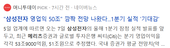 [투자] 화요일 삼전 실적 발표tradingideas (83)in #krsuccess • 23 days ago 1사분기 삼전 실적이 엄청날 듯 합니다. 증권사별로 차이가 있기는 하지만 평균 34조 메리츠는 54조 전망 #kr