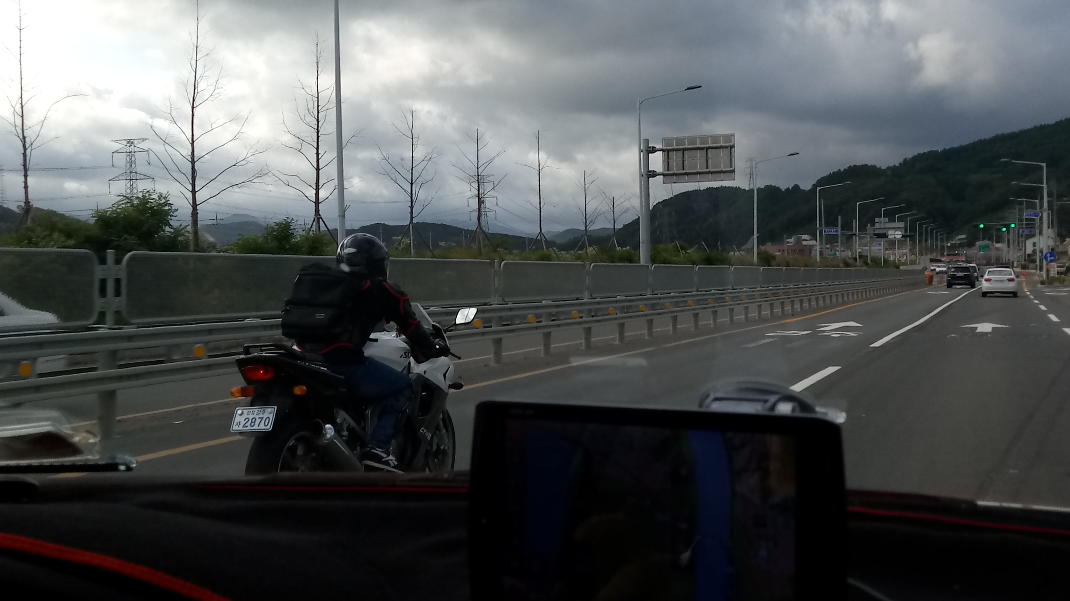 뒤에서 오토바이 친구가 갑자기 나타났습니다.