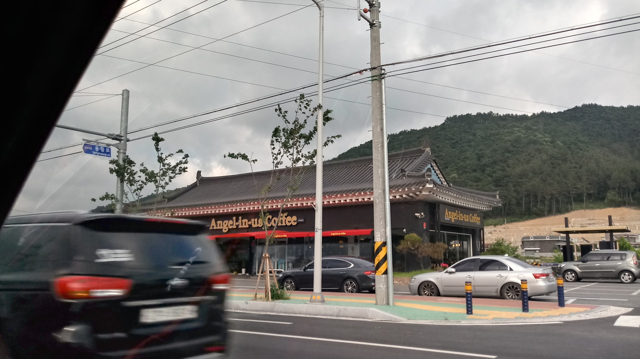 경주 이미지에 걸맞는 기와지붕 커피숍을 지나