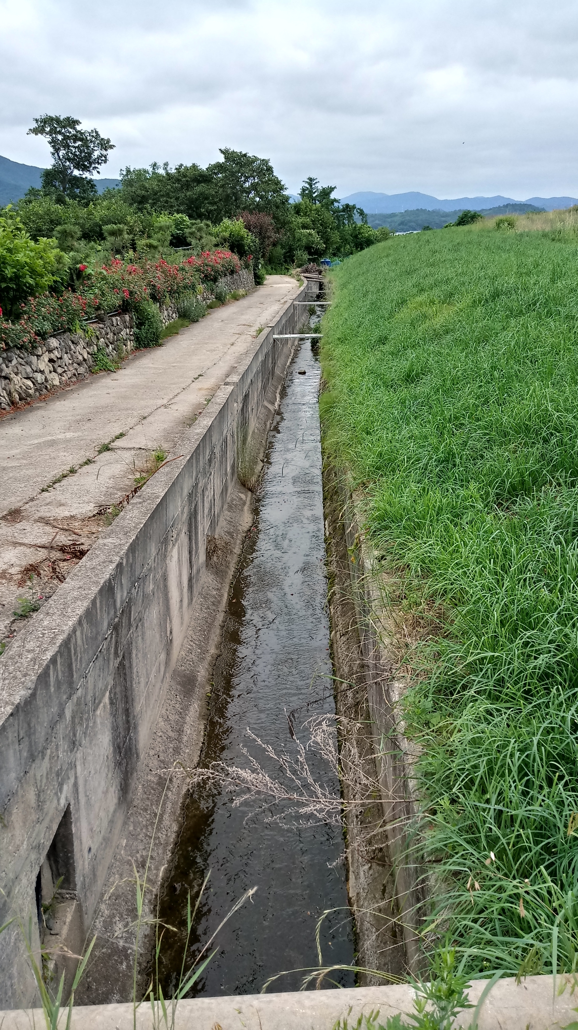 도랑에 흘러가는 물이 깨끗하네요.
