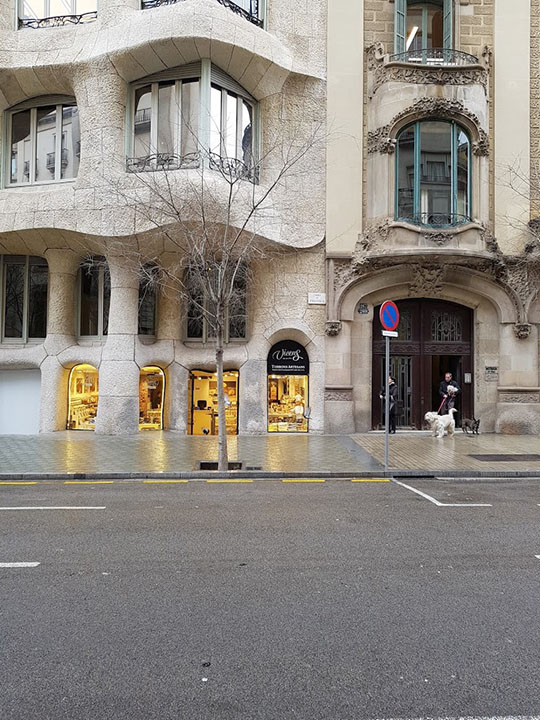 가우디는 현관 표식이나 문손잡이 같은 걸 신경 쓸 정도로 세부사항에 신경 썼습니다. 그렇지만 모든 세부사항이 완벽한 건 아니에요. 자세히 보면 엉성한 곳이 있기 마련이지요. 세부사항을 신경 쓴다고 전체가 완성되는 건 아닙니다. 문손잡이 하나에 신경 쓸라 치면 건물 하나 지을 만큼 신경 쓸 거리가 생깁니다. 그렇지만 아무리 완벽한 문손잡이를 만들고 타일 하나하나를 신경 썼다고 해도 그건 건축의 일부일 뿐이지요. 서로 모여 한 건축물이 되었을 때 부분의 세부사항을 살핀 것도 의미 있어집니다. 저는 문손잡이 하나에 집착하다 건축물 전체를 놓치고 싶지 않아요. 그런데 뭐가 아쉽다고 까사 바뜨요를 나와 다시 라 페데라의 외관을 보러 갔을까요. 문손잡이를 완성하고 집을 지어야 하는데 다시 문손잡이 살피러 간 꼴입니다.