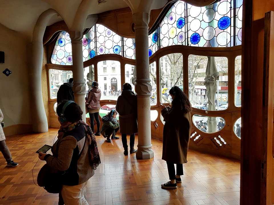 라 페데라도 그랬지만 까사 바뜨요도 실제 사용하는 건물이라 관람할 수 있는 부분은 제한적입니다. 들어가 볼 수 있는 까사 바뜨요 내부는 당시 모습으로 복원되어 있지 않고 텅 비어 있어요. 오디오 가이드를 겸하는 스마트폰을 들어 건물 내부를 살펴보면 증강현실을 통해 당시 모습을 확인할 수 있습니다.