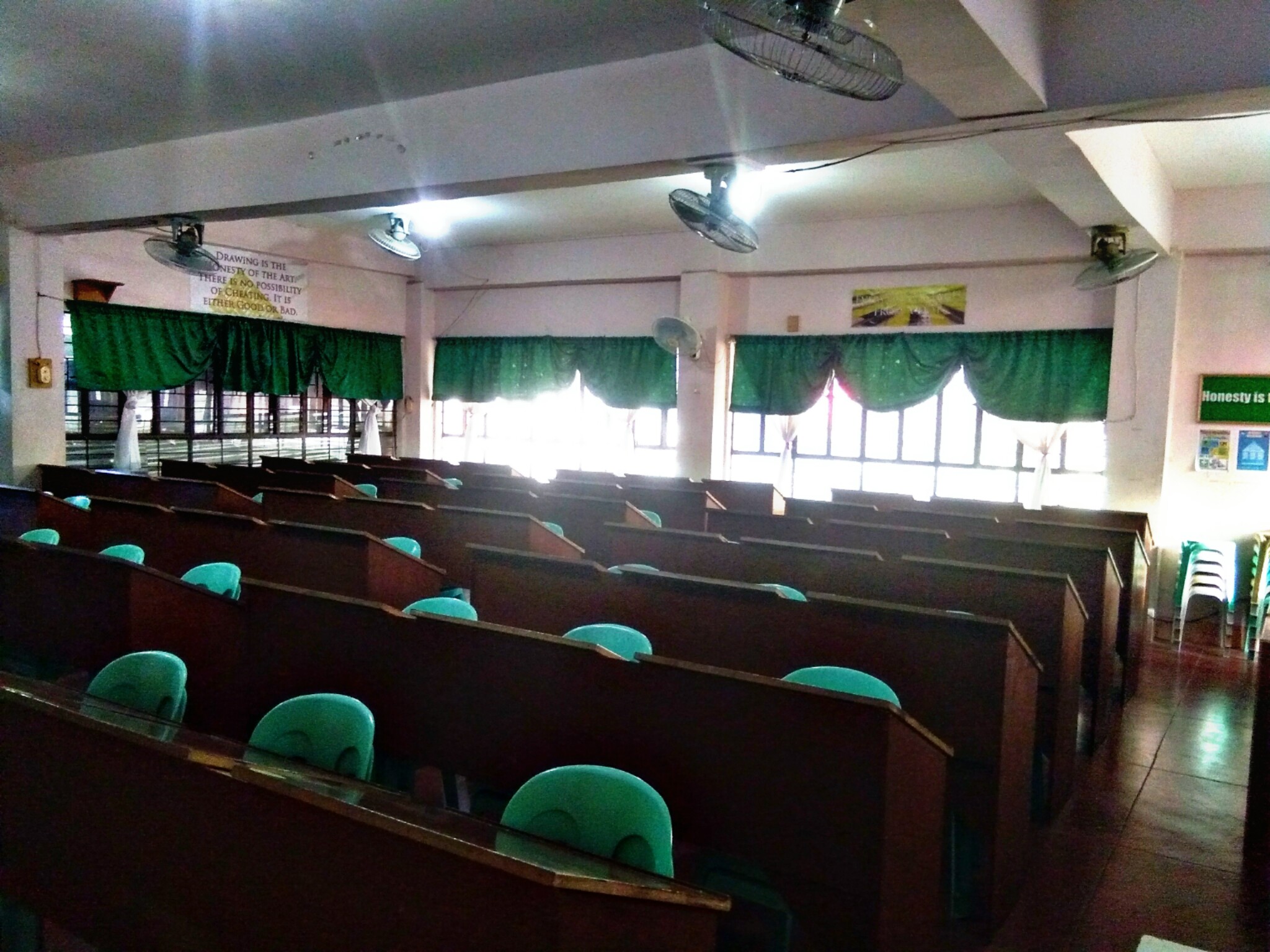 -used by junior highschool,the drafting room of the aasmnhs is just one ,so different section are entered into, can be seen in the picture of how many tables are in the drafting room,so every student have comfortable access to every activity they do.