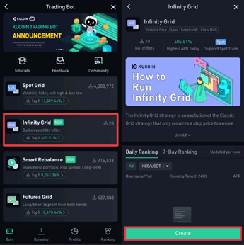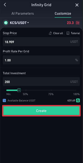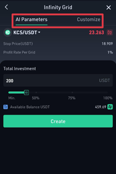 Etapa 1: Toque em [Infinity Grid] e, em seguida, toque em [Criar] para acessar a página Parâmetro;
