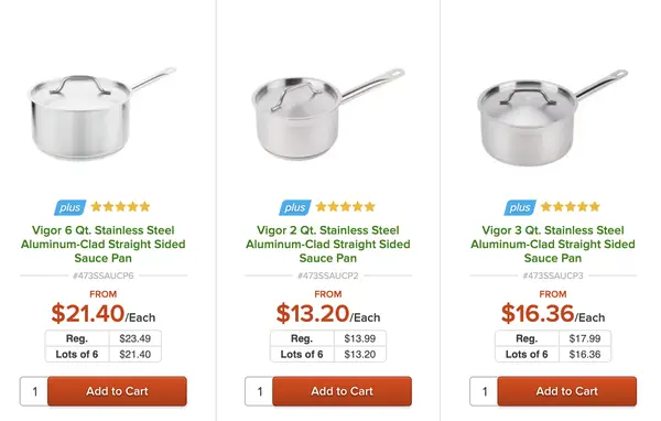 "They're almost always cheaper than big box stores. Plus their stuff is built to last years in a commercial kitchen under constant use, so it sure as hell can handle your Sunday brunch. There are a few online shops and my go-to has been Web Restaurant Store." —Fenway franks