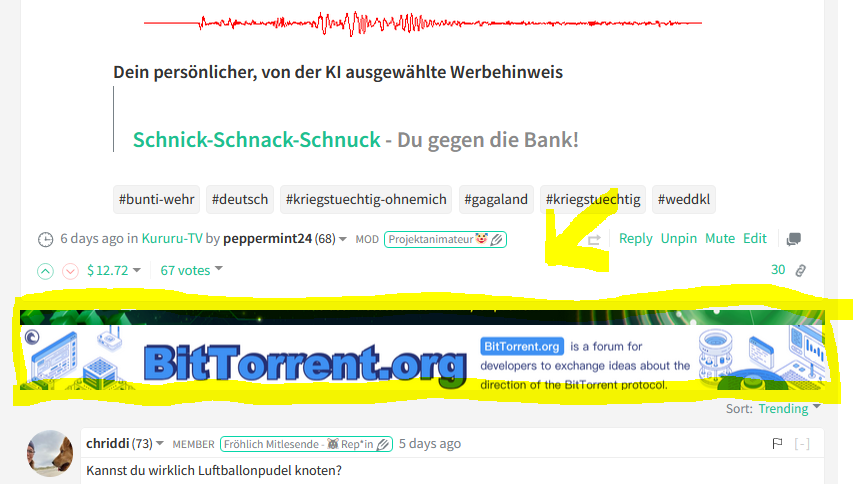 Ich habe gerade darüber nachgedacht, ob man den Werbeplatz auf SW wohl mieten kann...🤔