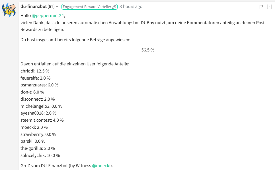 Laut dem Buchhaltungsmeister DUBby sind 56,5% der Gewinne verteilt: