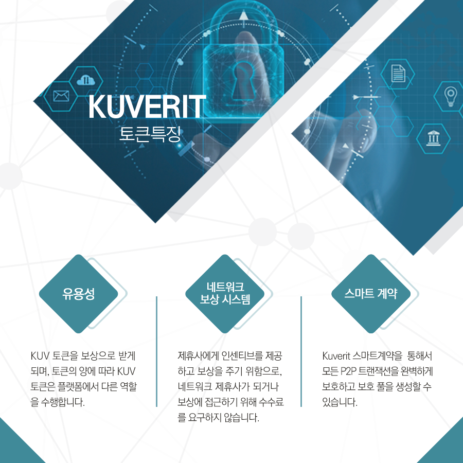 쿠버렛(Kuverit) 은 혁신적이고, 사용자 친화적인 플랫폼으로 블록체인 기술이나 스마트 계약, 암호화폐의 기술 혁신을 통해 사용자의 양방향 거래를 보증해줄 수 있으며, 커뮤니티 마켓 플레이스를 구축하는데 중점을 두고 지속적으로 발전할 예정이며, 사용자 피드백을 통해 전체 사용자가 쉽고 편하게 사용할 수 있는 특징과 새로운 모듈을 통합할 것이라고 합니다.