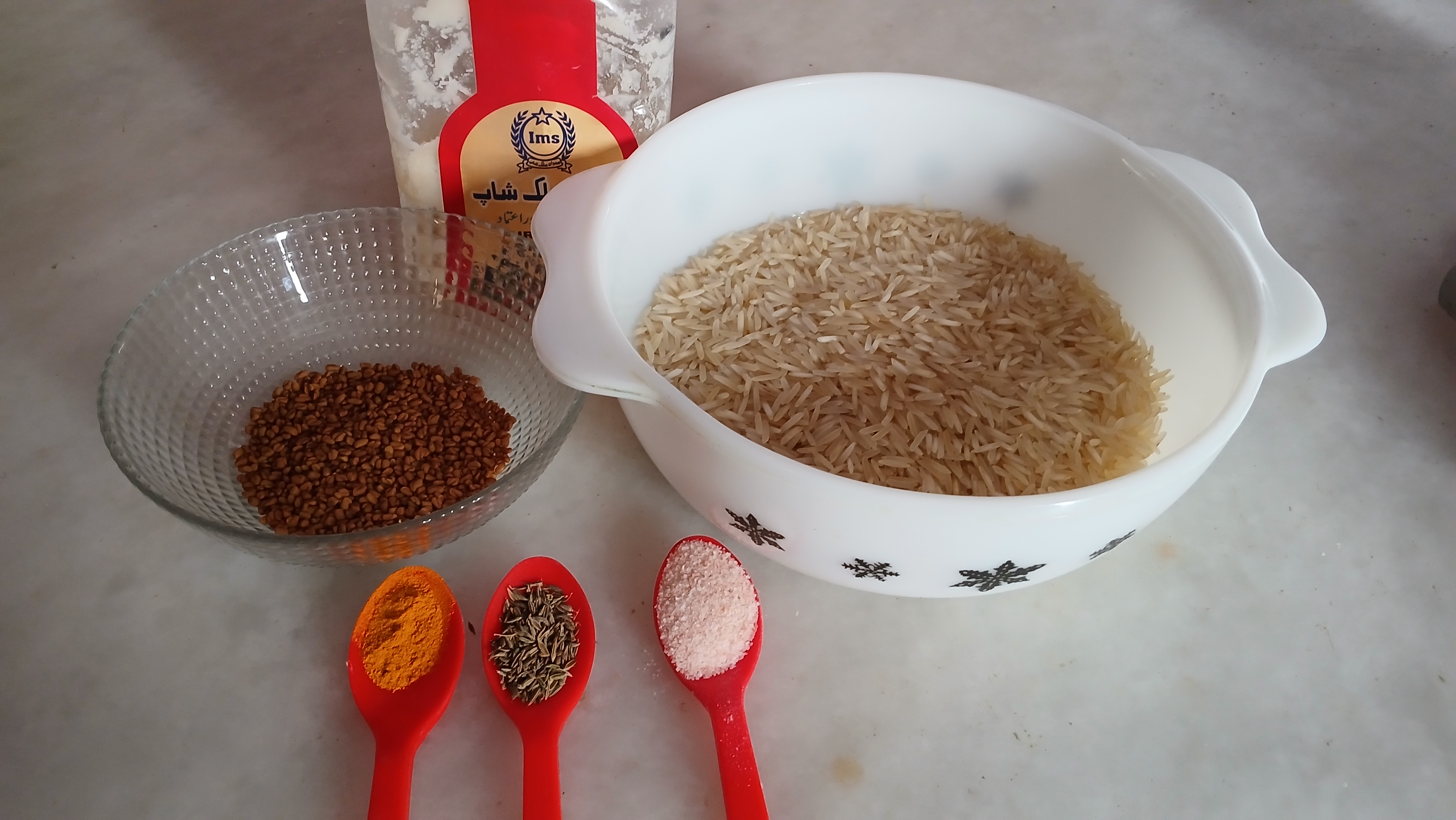 - First clean fenugreek seeds and soak them for 3-4 hrs. Then wash rice and soak them for 20min.
