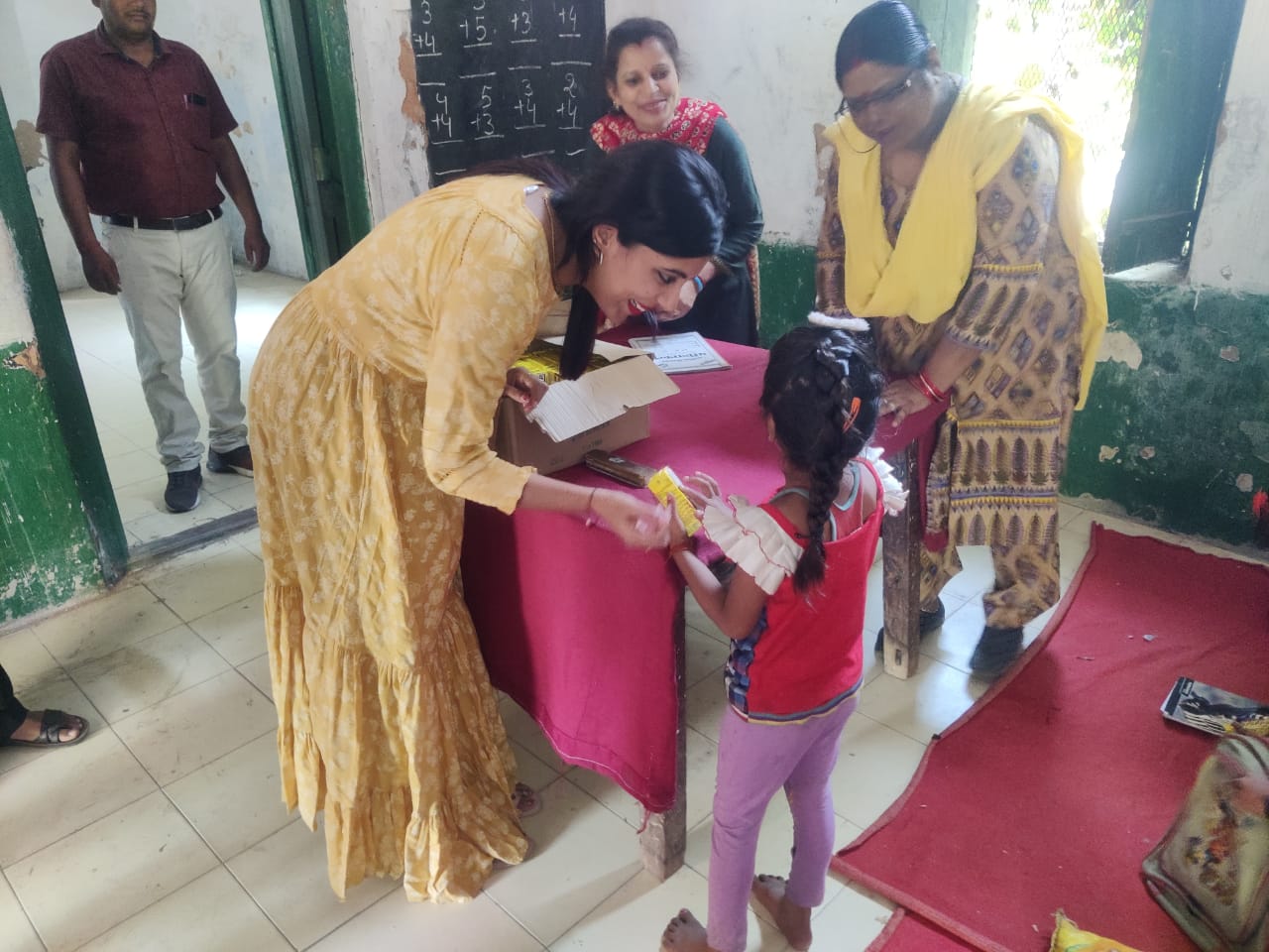 उन्होंने बच्चों के बीच जाकर उनकी कापियां देखी, उनसे कई प्रश्न पूछे। उन्हें पढ़ाई में आने वाली समस्याओं से भी रूबरू हुई। उन्होंने प्रत्येक बच्चों से नाम जानकर बहुत देर तक बातचीत की। बच्चों से पढ़ाई के विषय में बताया। उन्होंने बच्चों को विभिन्न खाद्य सामग्री व फ्रूटी का वितरण किया। उन्होंने विद्यालय के प्रत्येक कक्षा-कक्ष का बारीकी से निरीक्षण किया। आपरेशन कायाकल्प व शिक्षण व्यवस्था के लिए आवश्यक प्रत्येक संसाधन की पूर्ति के लिए जरूरी दिशा निर्देश दिए।