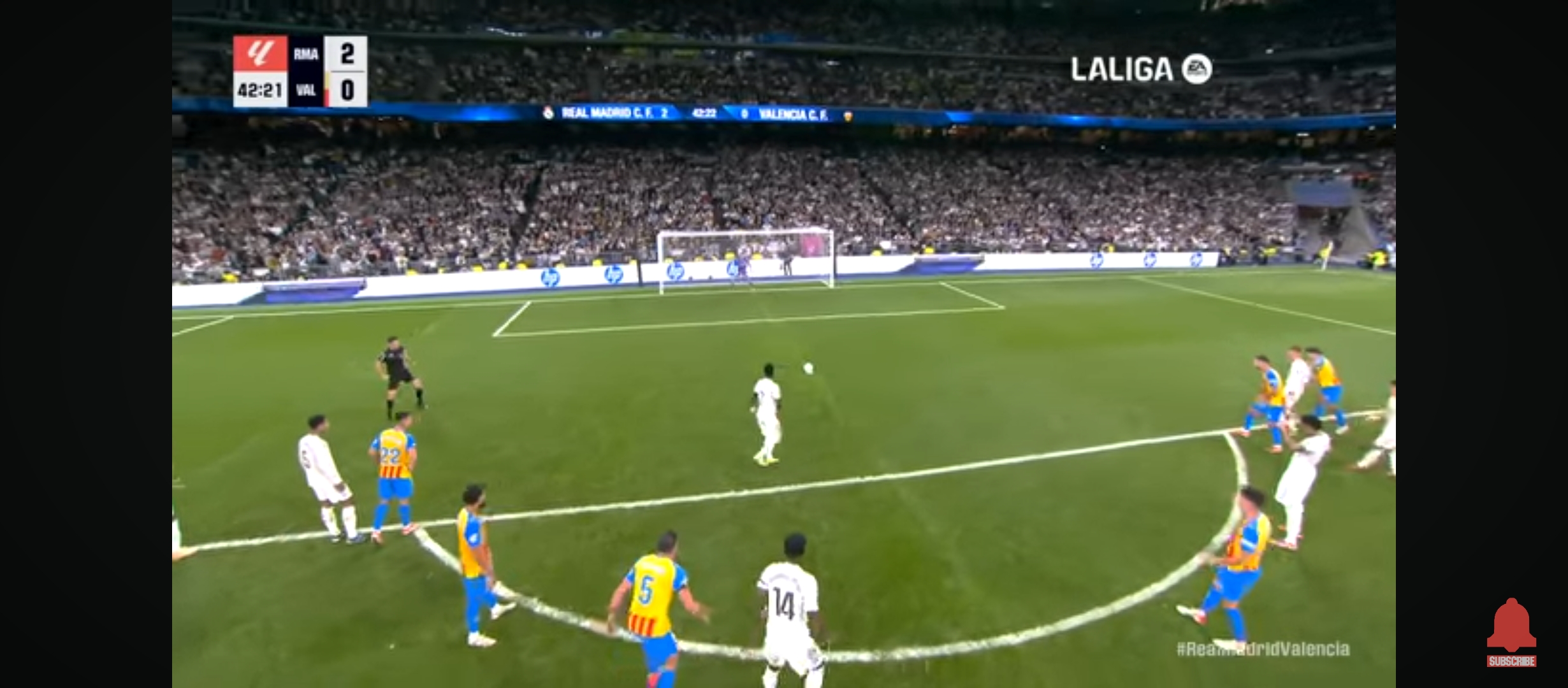 ফুটবলে সহজ জয় বলতে সম্ভবত কিছু একেবারেই হয় না। এক্ষেত্রে প্রয়োজন হয় দলের সবার সর্বোচ্চ পারফরম্যান্স। হ‍্যা কখনও কখনও অপেক্ষাকৃত দূর্বল দলের সঙ্গে বেশি গোলের ব‍্যবধানে ম‍্যাচ জেতা যায় কিন্তু সেটা তো আর সহজ জয় না। গতরাতে রিয়াল মাদ্রিদের খেলা ছিল ভ‍্যালেন্সিয়ার সাথে। রিয়ালের ঘরের মাঠ সান্তিয়‍্যাগো বার্নাব‍্যুতে মাদ্রিদের খেলা ছিল। রিয়াল মাদ্রিদ তাদের সেই চিরচেনা ৪-৩-৩ ফর্মেশনে মাঠে নামে। দুই ম‍্যাচ পরে আবার শুরুর একাদশে জায়গা পায় মাস্তুয়ানতুনো। অন‍্যদিকে প্রতিপক্ষ ভ‍্যালেন্সিয়ার ফর্মেশন ছিল ৪-৪-২। অর্থাৎ হাই ডিফেন্সিভ ফর্মেশন। প্রতিপক্ষ খেলাটা ড্র করে এক পয়েন্ট নিয়ে যাওয়ার ইচ্ছা নিয়েই মাঠে নেমেছিল। তবে সেটা আর হয়নি।রিয়াল মাদ্রিদ রীতিমতো গোল উৎসব করেছে বলা যায় ।