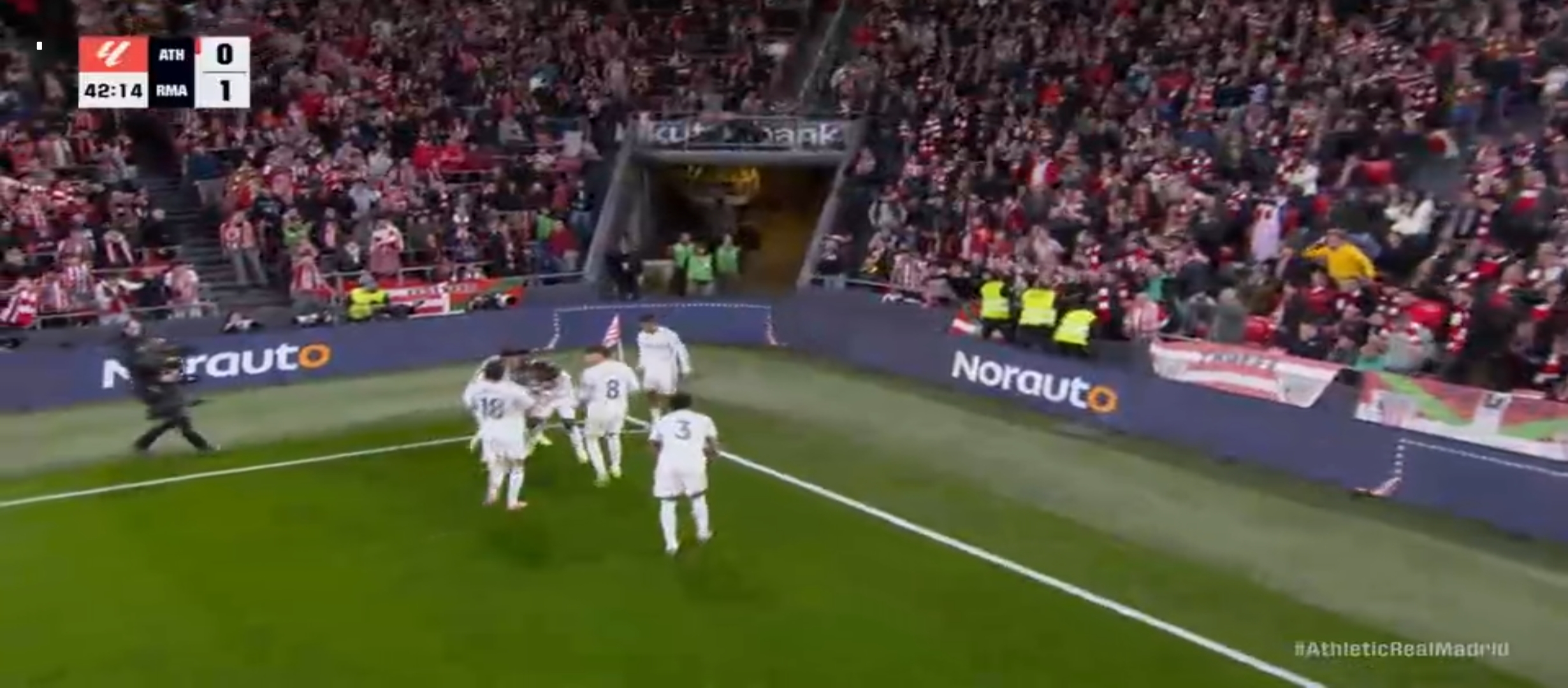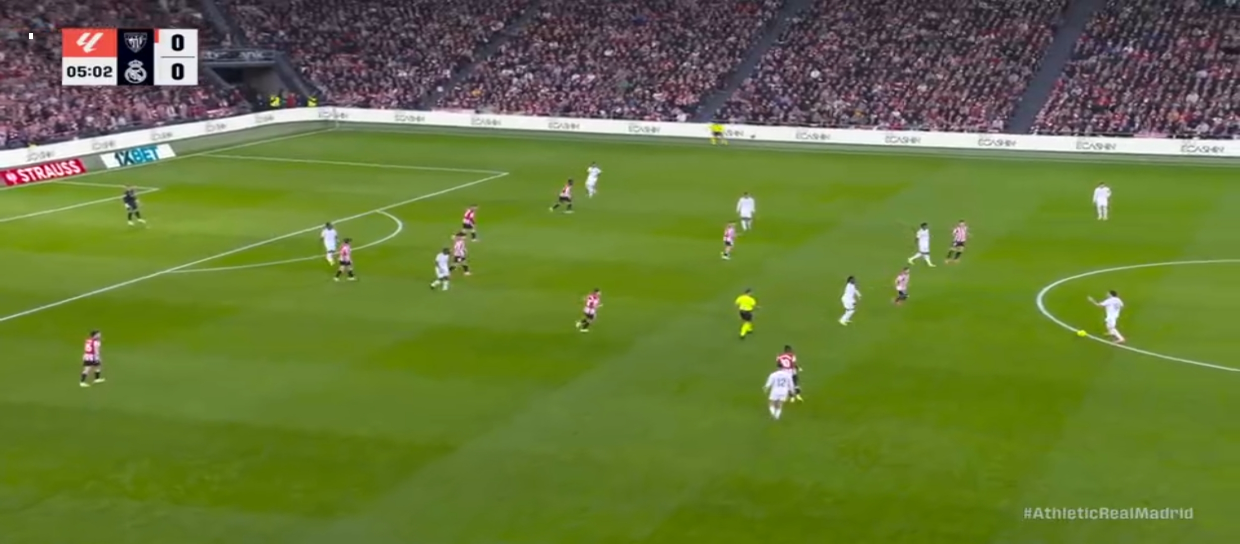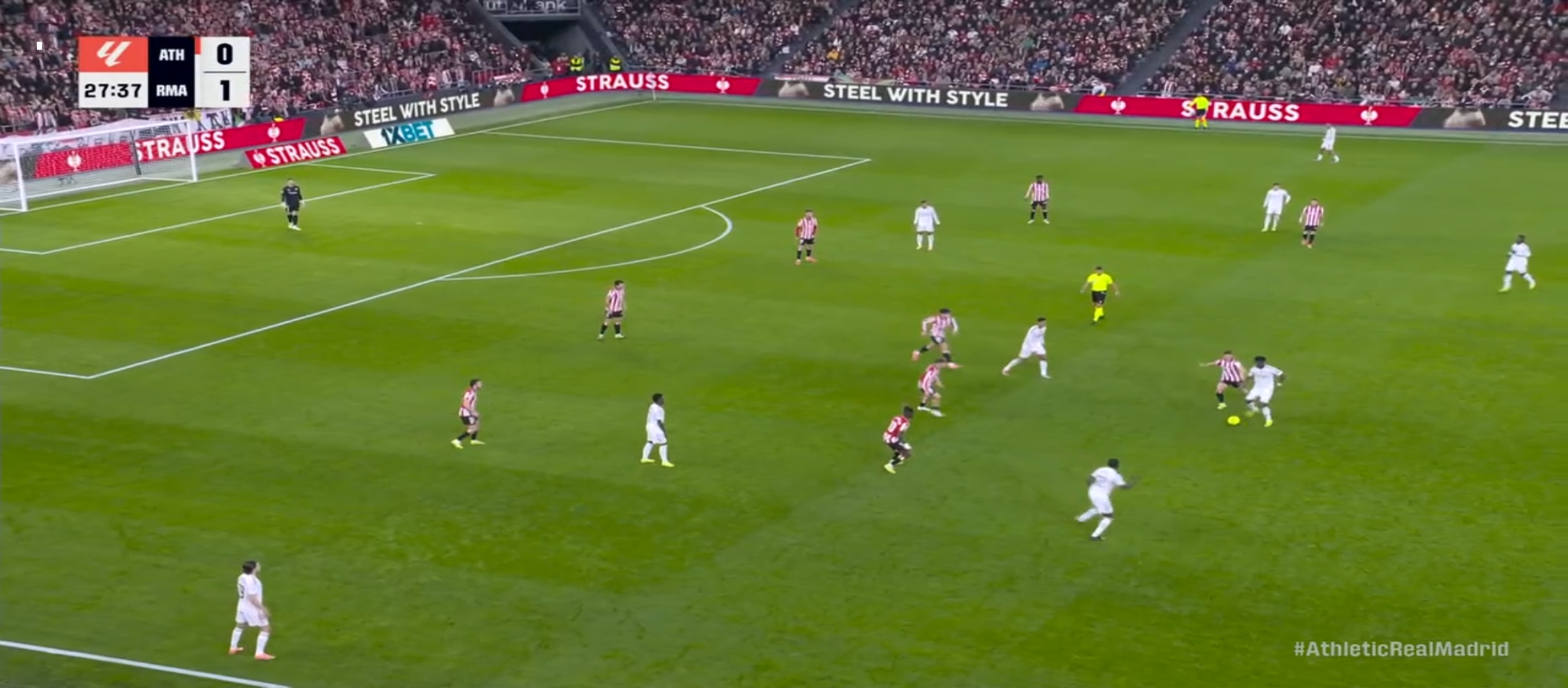 আবার খেলা শুরু হয়। যথারীতি রিয়াল মাদ্রিদ তাদের আক্রমণ চালিয়ে যেতে থাকে। মিলিটাও এর লং বলে দারুণ ভাবে ফাঁকা পেয়ে যায় ভিনিসিয়াস। কিন্তু ভিনিসিয়াস শর্ট নিলে প্রতিপক্ষ গোলরক্ষক উনাই সিমনন্স সেটা সেভ দিয়ে দেয়। ম্যাচের ৪২ মিনিটের সময় এমবাপ্পে একটা হেড দিয়ে বলটা পাঠিয়ে দেয় কামাভিঙ্গার কাছে। এবং কামাভিঙ্গা দারুণ একটা গোল করে। ০-২ গোলে এগিয়ে যায় রিয়াল মাদ্রিদ। খেলা শেষ হয় প্রথমার্ধের। দ্বিতীয়ার্ধে খেলতে নেমে যথারীতি আগের মতোই খেলতে থাকে রিয়াল মাদ্রিদ। বেশ কিছু সুযোগ তৈরি করে কিন্তু গোল সেভাবে করতে পারছিল না। ম্যাচের তখন ৫৯ মিনিট চলছে। ডিবক্সের বেশ কিছুটা বাইরে থেকে এক চমৎকার শর্ট নেয় কিলিয়ান এমবাপ্পে। প্রতিপক্ষ গোলরক্ষক শুধু তাকিয়ে দেখেছে। সেটা সেভ দিতে পারেনি। ফলাফল ৩-০ গোলে এগিয়ে যায় রিয়াল মাদ্রিদ।