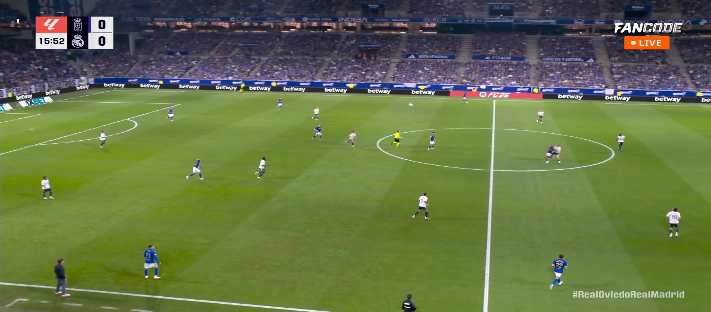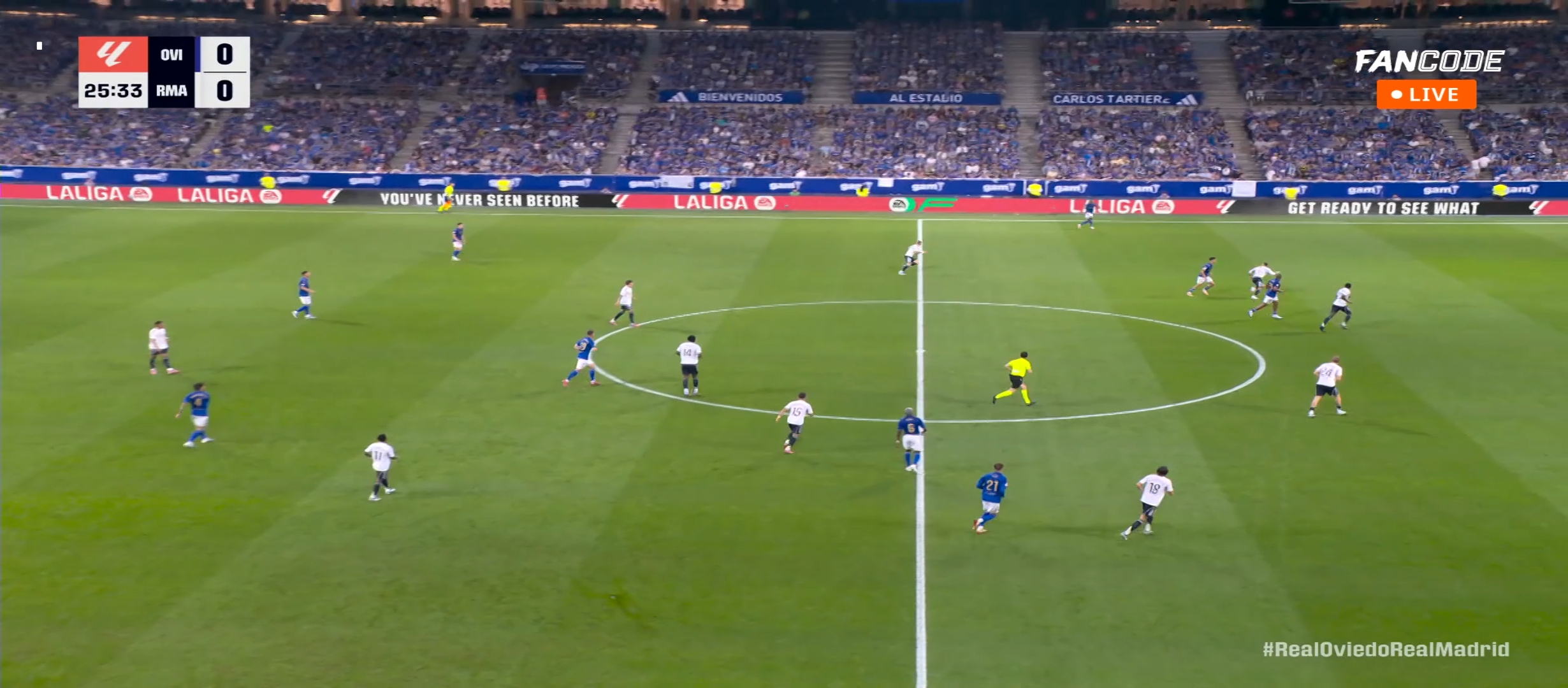 লীগের দ্বিতীয় ম্যাচে মাঠে নেমেছিল রিয়াল মাদ্রিদ। দ্বিতীয় ম্যাচে রিয়াল মাদ্রিদের প্রতিপক্ষ ছিল রিয়াল ওবেইদো। রিয়াল মাদ্রিদ গতম্যাচ টা জিতলেও খেলা দেখে একেবারেই প্রশান্তি পাইনি। কারণ গতম্যাচে রিয়াল মাদ্রিদ সেই ধরাবাঁধা ফুটবল টা খেলেছে। তারা রিয়াল মাদ্রিদের মতো খেলতে পারেনি। দ্বিতীয় ম্যাচে মাদ্রিদ কোচ আলোনচো বলতে গেলে কিছু আত্মঘাতী সিদ্ধান্ত নেয়। এবং সেটা পুরোপুরি কাজ করেছে বলা যায় । ভিনিকে শুরুর একাদশে রাখেনি কোচ। তার পরিবর্তে মাঠে নেমেছিল রদ্রিগো। অন্য দিকে তরুন মাস্তুয়ানো দ্বিতীয় ম্যাচেই শুরুর একাদশে জায়গা করে নিয়েছে। এই ম্যাচটা ছিল বাংলাদেশ সময় রাত দেড় টার সময়। রিয়াল মাদ্রিদের ফর্মেশন ছিল ৪-৩-৩। ডিফেন্স মিলিটাও এর জায়গাই ছিল রুডিগের। এবং আর্নল্ড জায়গাই নেমেছিল কার্ভাহাল।