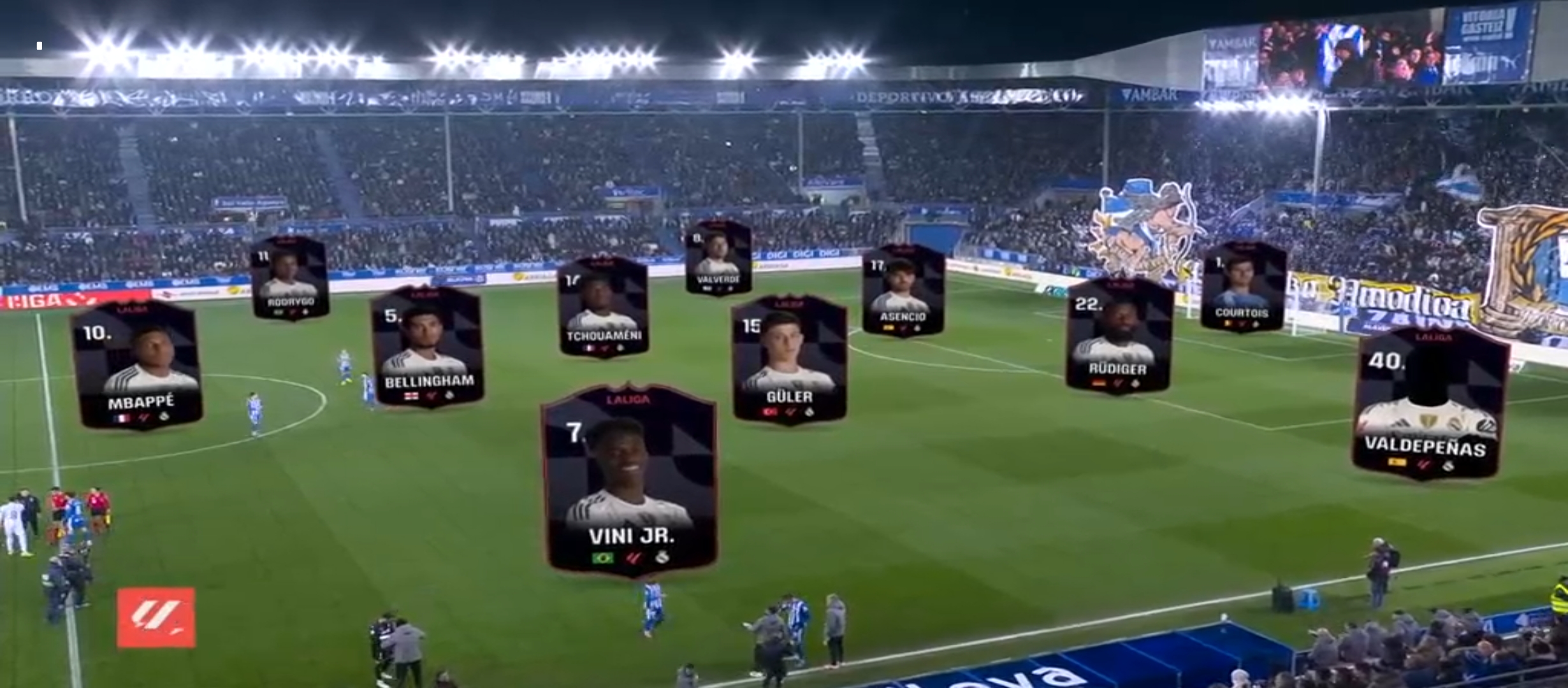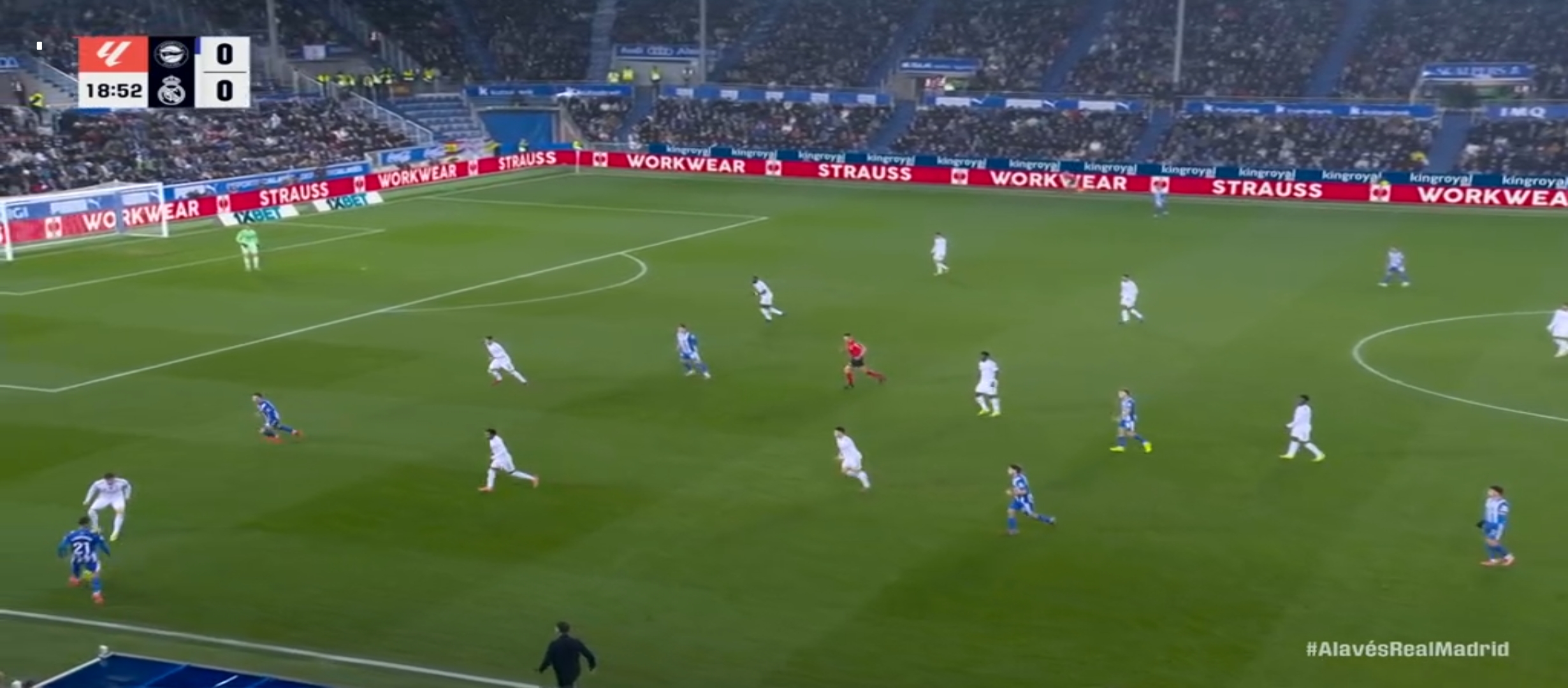সবমিলিয়ে ইঞ্জুরি এবং নিষেধাজ্ঞায় রিয়াল মাদ্রিদের পুরো ১১ জন খেলোয়ার ছিল স্কোয়ার্ডের বাইরে। লেফট ব্যাক এবং রাইট ব্যাকে খেলার মতো কেউ ছিল না। ফলাফল সেই ভালভার্দে কে রাইট ব্যাকে। কিন্তু লেফট ব্যাকে কে খেলবে? শাবি একাডেমি থেকে নিয়ে আসলো ১৯ বছরের তরুণ ভালদেসপিনো কে। এটাই তার প্রথম ম্যাচ। অন্যদিকে দুই সেন্টারব্যাকে ছিল রুডিগের এবং রাহুল অ্যাসেনসিও। সাম্প্রতিক পারফরমেন্সে যাদের কাউকেই বিশ্বাস করা যায় না। তবে অন্যদিকে এমবাপ্পে ফিরেছিল এটাই ছিল স্বস্তি। এমন ম্যাচে জয়টা যেন দরকার ছিল। না হলে বার্সেলোনা থেকে পুরোপুরি ৭ পয়েন্ট পিছিয়ে যেত রিয়াল মাদ্রিদ। লা লীগায় রিয়াল মাদ্রিদের ম্যাচটা ছিল দে পোর্তিভো আলভেস এর সাথে।