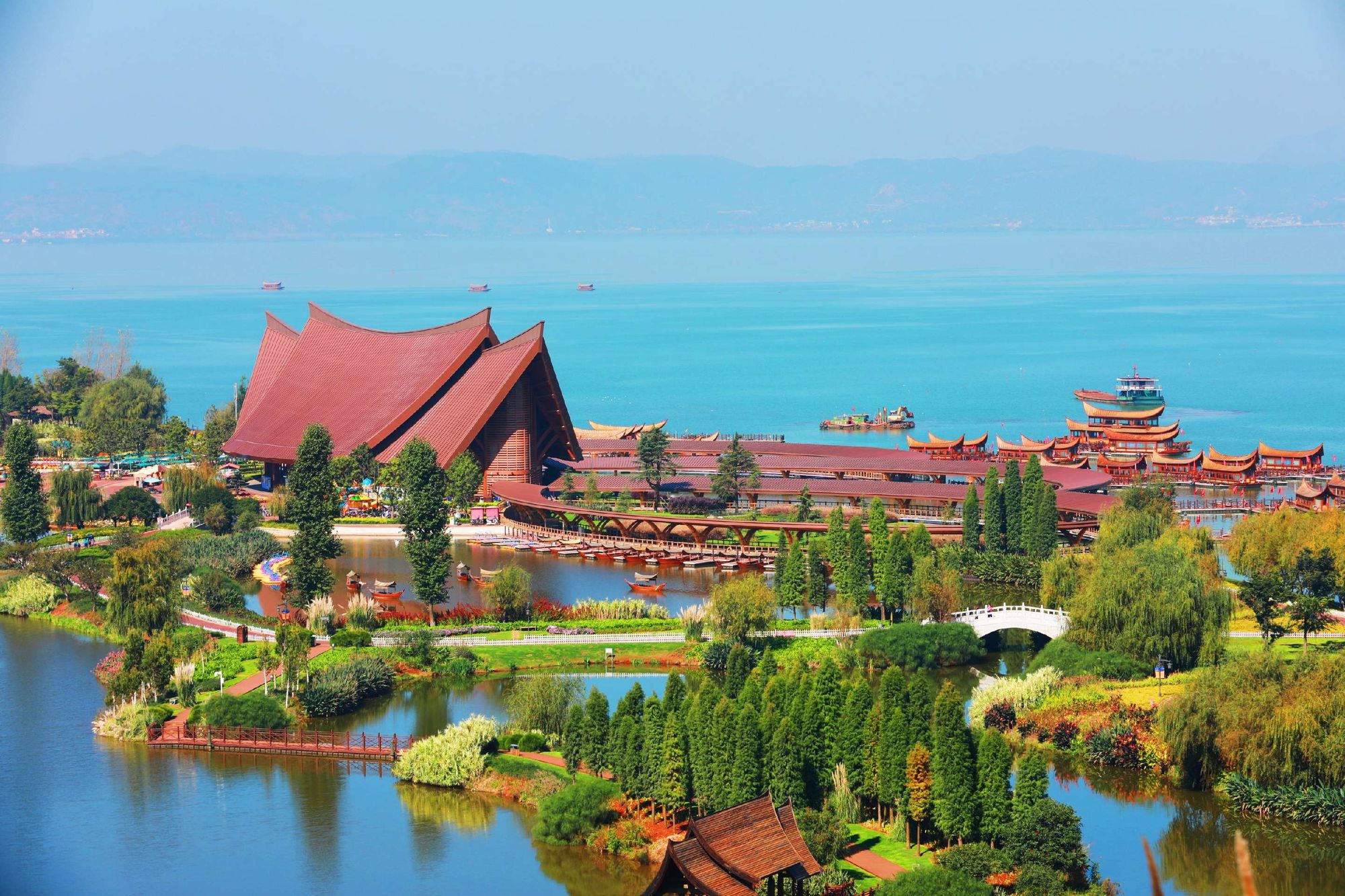 滇池是昆明的母亲湖,也是中国第六大淡水湖。这里湖水清澈,周围山峦环绕,景色十分秀丽。你可以在湖边散步、骑行,也可以乘船游览滇池,欣赏湖光山色。