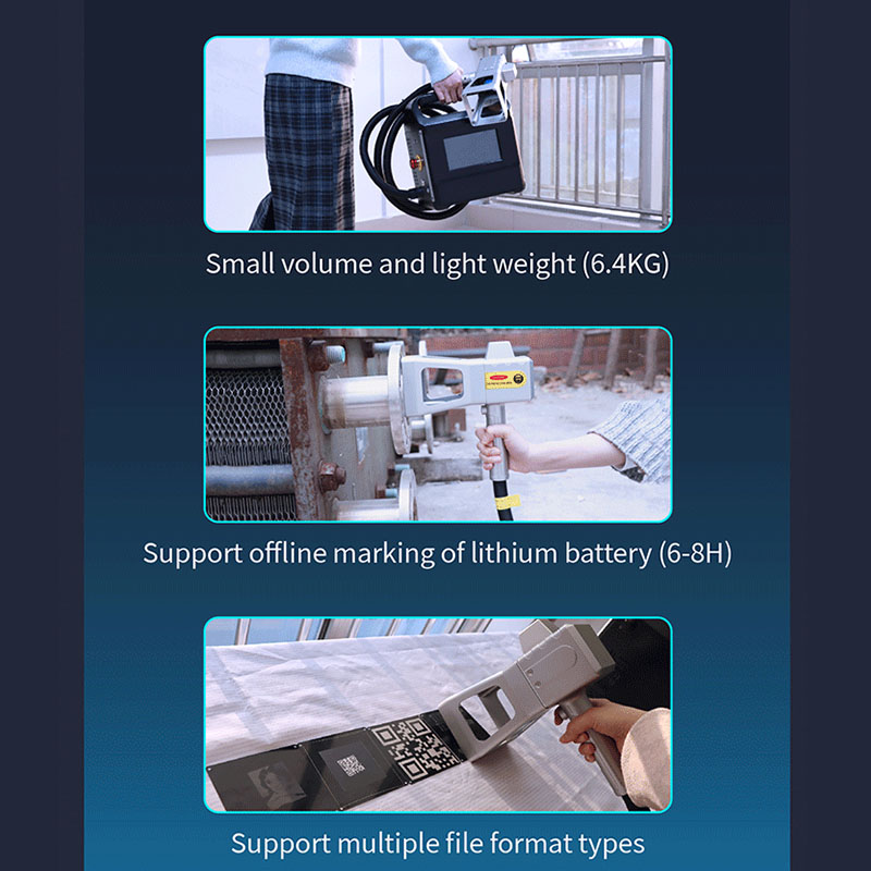 It is used in narrow, outdoor and special space operations, especially for marking objects that are inconvenient to move. Just align the handle with the workpiece and press the switch to easily achieve marking.The handle weighs 1kg, which is very convenient for both men and women to operate.Maintenance-free.