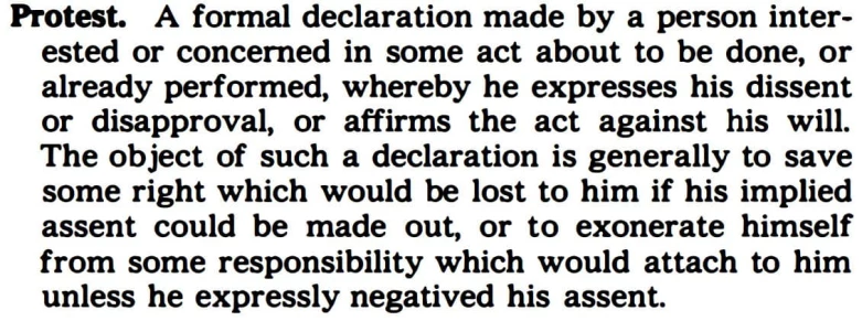 The word protest is defined in Black's Law Dictionary as shown below.