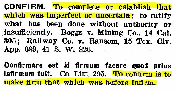 First we look at the word ratify as shown below. Ratify seems to mean almost the same a confirm but if one is to express his interpretation of the word ratify it would appear that it means "you agree with" or "accept that which is proposed". Further to this we can look at the definition of the word confirm.