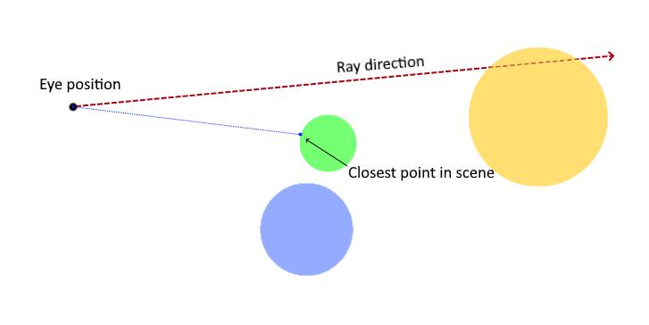 We start at the camera position, and ask -- what's the closest part of the scene to this point?