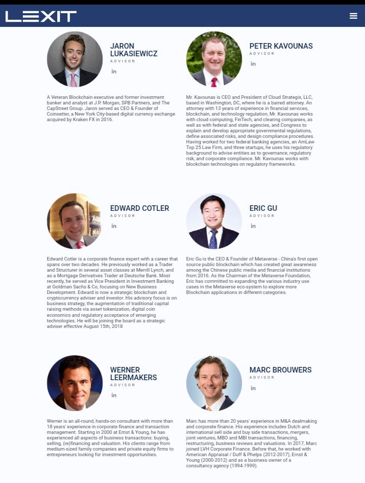 The Lexit group is comprised of experts who are knowledgeable about various fields, consolidate that with an amazing rundown of consultants and Jaw Dropping Partnerships and you have a task which is bound to be progressive. The following are pictyres of a portion of the some team & advisors