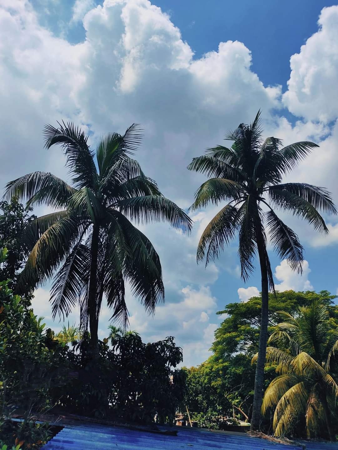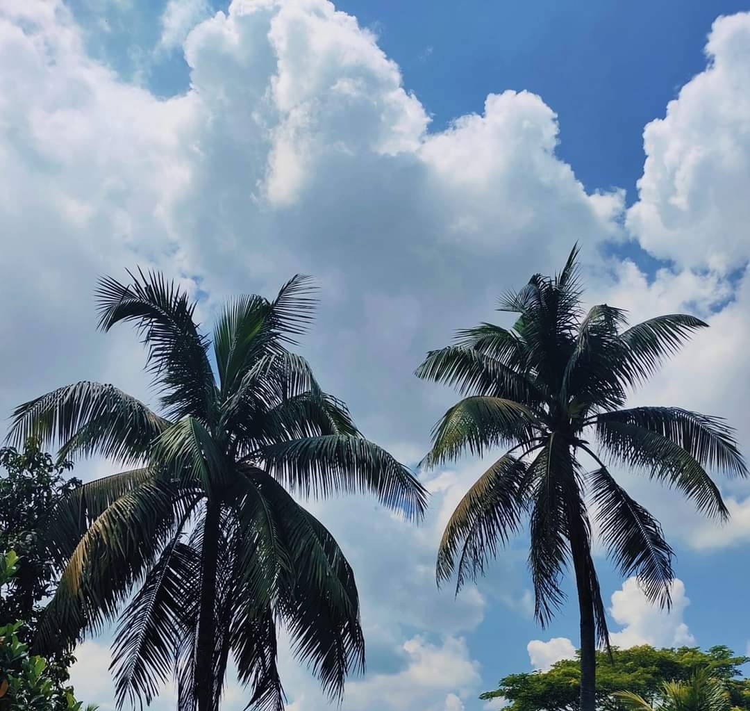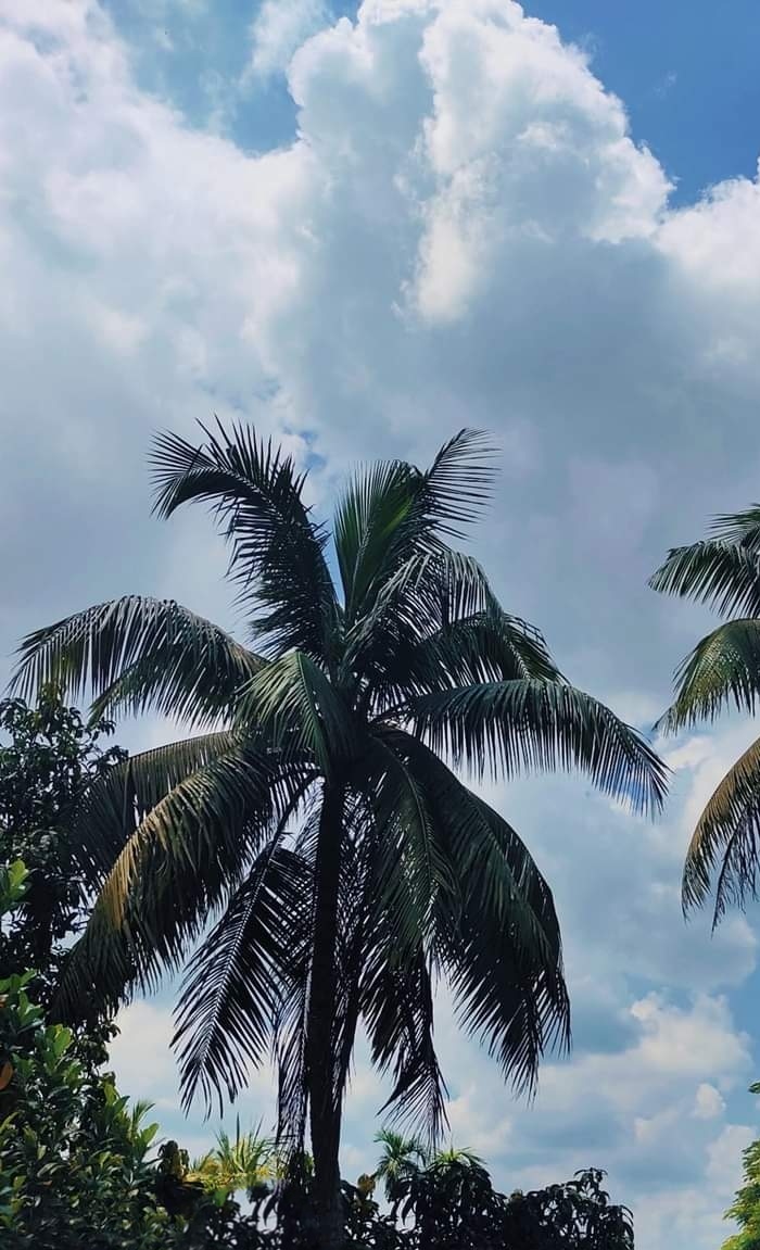 I like this place with trees. Because white clouds are floating in the sky. There is a beautiful view through this beautiful tree which I am thoroughly enjoying. In fact, I don't see such a scene in most places. But I found this place that day. So I consider myself lucky. Later I took some photographs with my camera. So that I can use you for something bad later.