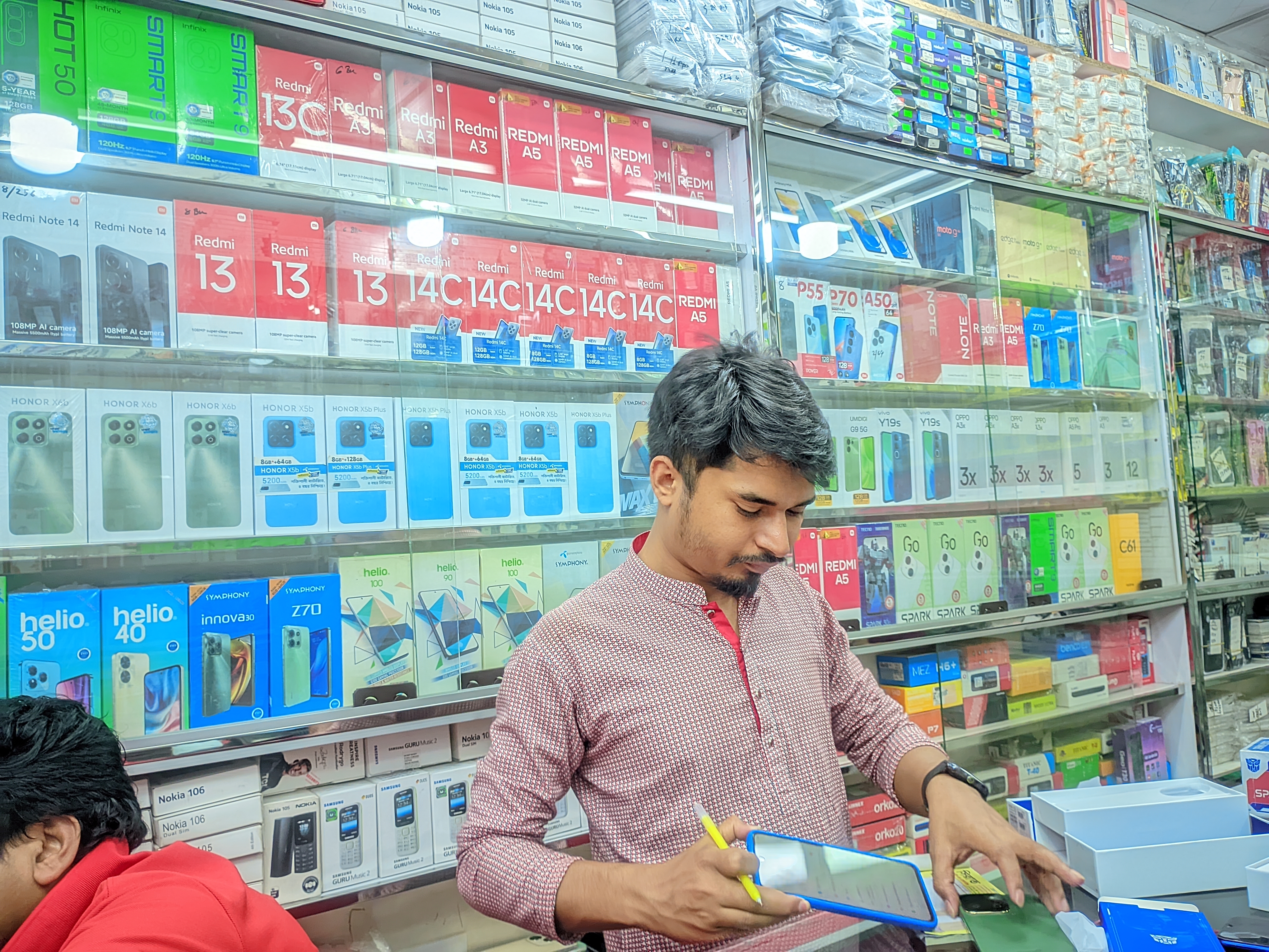 āϏā§āĻĒāĻžāϰ āĻŽāĻžāϰā§āĻā§āĻā§āϰ āĻā§āϤāϰ⧠āĻĒā§āϰāĻŦā§āĻļ āĻāϰāϤā§āĻ āĻā§āĻā§ āĻĒāĻĄāĻŧāϞ āĻāĻā§āϰ āĻĒāϰ āĻāĻ āĻŽā§āĻŦāĻžāĻāϞ āĻļā§āϰā§āĻŽāĨ¤ āĻāĻŽāĻŋ āĻĒā§āϰāĻĨāĻŽā§ āĻā§āϞāĻžāĻŽ āϰāĻŋāϝāĻŧā§āϞāĻŽāĻŋāϰ āĻĻā§āĻāĻžāύā§āĨ¤ āϏā§āĻāĻžāύ⧠Narzo 50A āĻĻā§āĻāϞāĻžāĻŽ, āĻāĻŋāύā§āϤ⧠āĻŦā§āϝāĻžāĻāĻžāϰāĻŋ āĻā§āϝāĻžāĻĒāĻžāϏāĻŋāĻāĻŋ āĻāĻŽāĻžāϰ āĻĒāĻāύā§āĻĻ āĻšāϞ⧠āύāĻžāĨ¤ āĻāϰāĻĒāϰ āĻĻā§āĻāĻžāύ⧠Tecno Spark āĻāϰ āĻāĻāĻāĻž āĻĢā§āύ āĻĻā§āĻā§ āĻŽā§āĻā§āϧ āĻšāϞāĻžāĻŽ - 5000mAh āĻŦā§āϝāĻžāĻāĻžāϰāĻŋ, āĻĒā§āϰāϏā§āϏāϰ āĻ āĻ āύā§āĻ āĻāĻžāϞā§! āĻĻā§āĻāĻžāύāĻĻāĻžāϰ āĻāĻžāĻ āĻā§āĻŦ āĻāĻžāϞā§āĻāĻžāĻŦā§ āϏāĻŦ āĻĢāĻŋāĻāĻžāϰ āĻŦā§āĻāĻŋāϝāĻŧā§ āĻĻāĻŋāϞā§āύāĨ¤ āĻĻāĻžāĻŽ āĻŦāϞāϞā§āύ ⧧⧝,ā§Ģā§Ļā§Ļ āĻāĻžāĻāĻžāĨ¤ āĻāĻāĻā§ āύā§āĻā§āĻļāĻŋāϝāĻŧā§āĻ āĻāϰāϤā§āĻ ā§§ā§¯,ā§Ļā§Ļā§Ļ āĻāĻžāĻāĻžāϝāĻŧ āϰāĻžāĻāĻŋ āĻšāϝāĻŧā§ āĻā§āϞā§āύāĨ¤āĻĢā§āύāĻāĻž āύāĻŋāϝāĻŧā§ āϝāĻāύ āϰāĻžāϝāĻŧāĻžāύā§āϰ āĻŦāĻžāϏāĻžāϝāĻŧ āĻĒā§āĻāĻāĻžāϞāĻžāĻŽ, āϏ⧠āϤāĻāύ āĻŦāĻžāϰāĻžāύā§āĻĻāĻžāϝāĻŧ āĻŦāϏ⧠āĻŦāĻ āĻĒāĻĄāĻŧāĻāĻŋāϞāĨ¤ āĻāĻŽāĻŋ āĻŦāϞāϞāĻžāĻŽ, "āϰā§, āϤā§āϰ āĻāύā§āϝ āĻāĻāĻāĻž āĻāĻŋāύāĻŋāϏ āĻāύā§āĻāĻŋāĨ¤" āϏ⧠āĻ āĻŦāĻžāĻ āĻšāϝāĻŧā§ āϤāĻžāĻāĻžāϞāĨ¤ āϝāĻāύ āĻĢā§āύā§āϰ āĻŦāĻžāĻā§āϏāĻāĻž āϤāĻžāϰ āĻšāĻžāϤ⧠āĻĻāĻŋāϞāĻžāĻŽ, āĻĒā§āϰāĻĨāĻŽā§ āϏ⧠āĻāĻŋāĻā§ āĻŦāϞāϤā§āĻ āĻĒāĻžāϰāϞ āύāĻž! āϤāĻžāϰ āĻā§āĻā§ āĻĻā§āĻāϞāĻžāĻŽ āĻāĻ āĻ āĻĻā§āĻā§āϤ āĻā§āϝā§āϤāĻŋāĨ¤