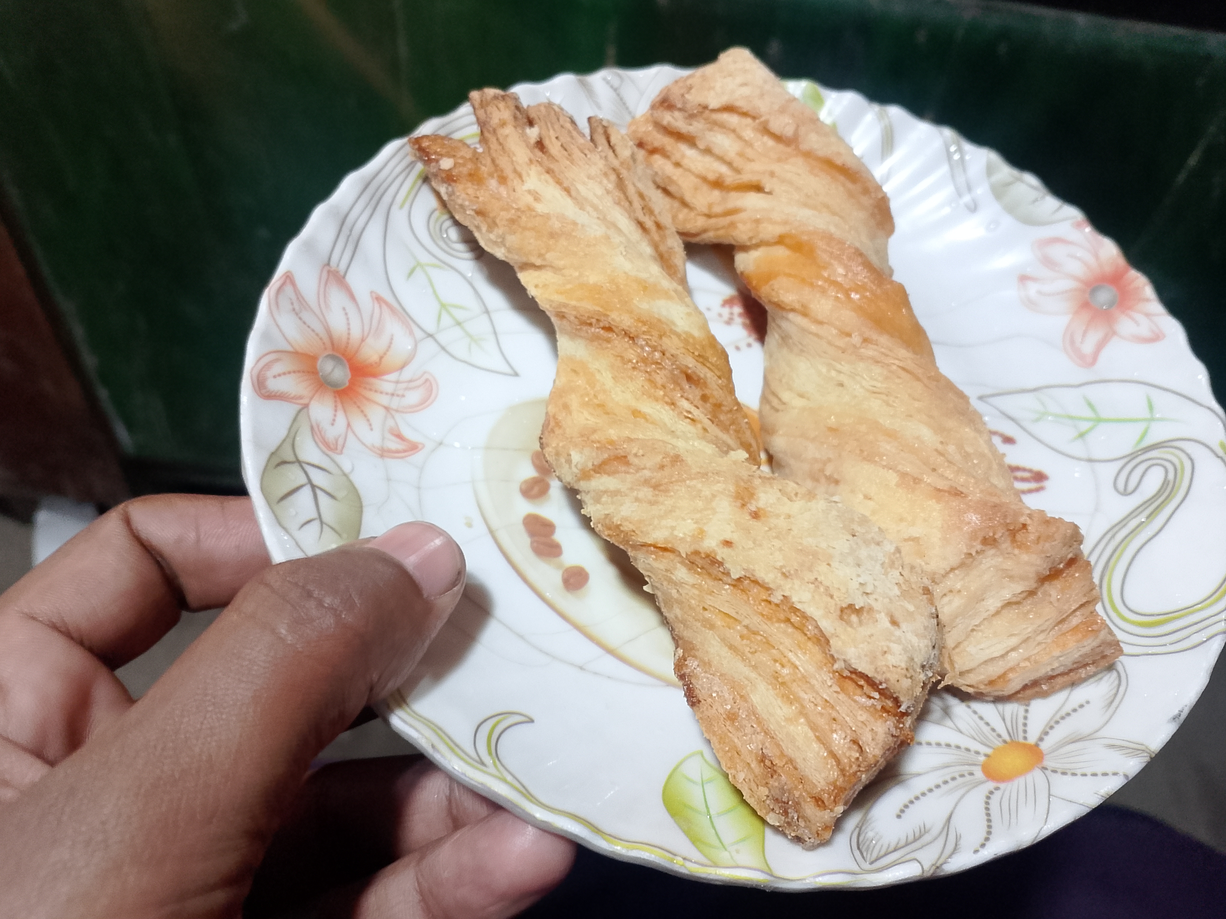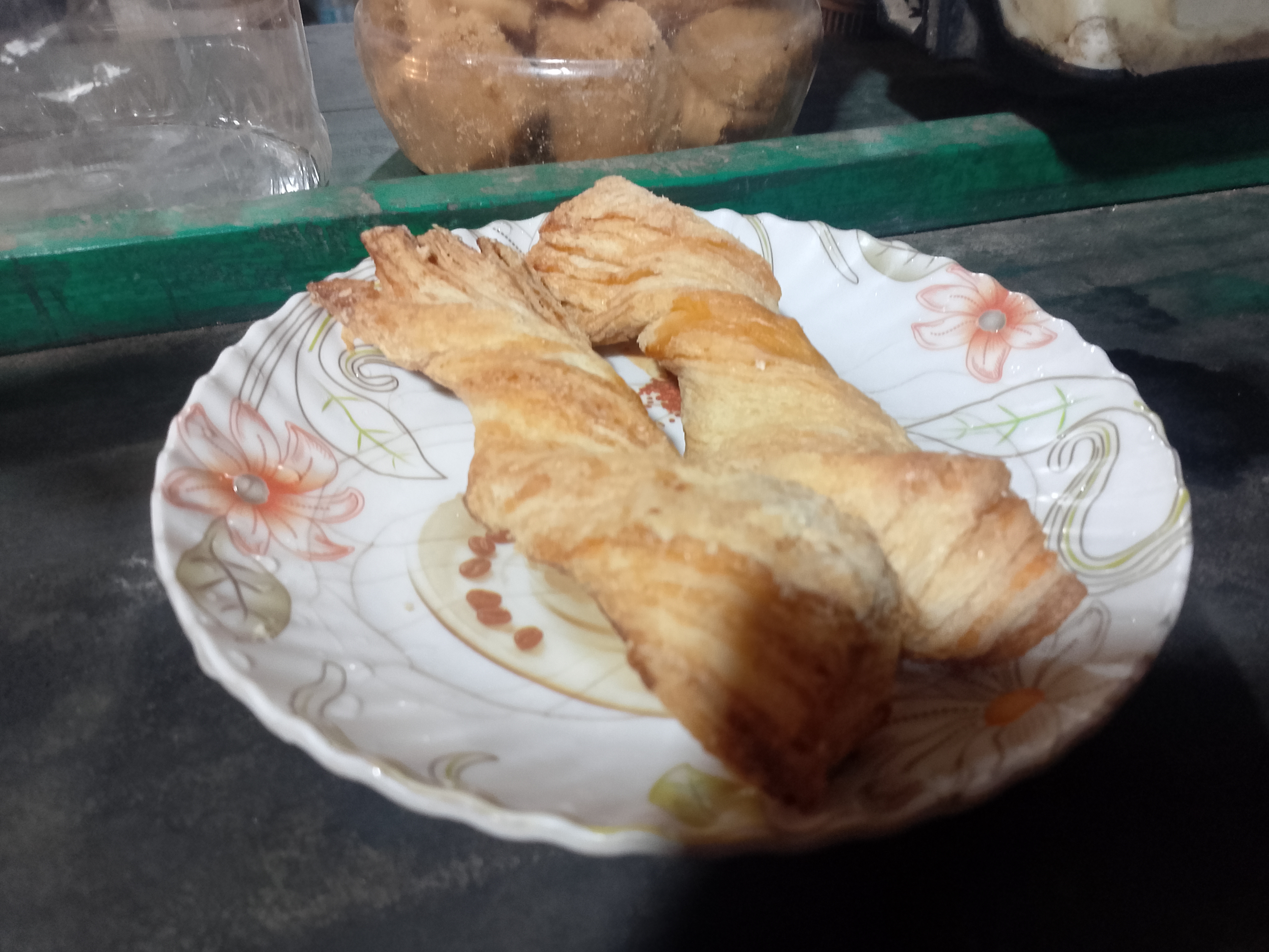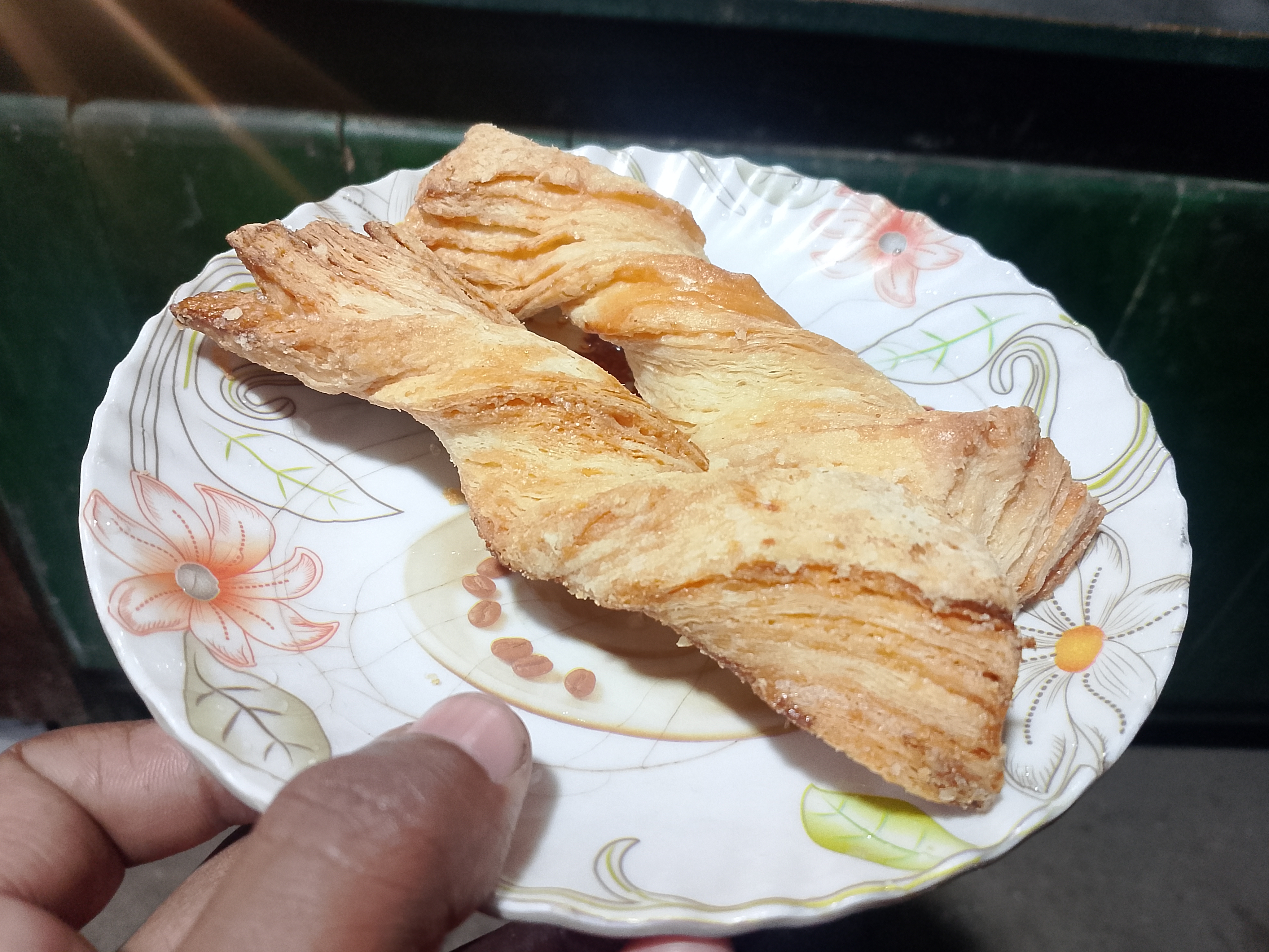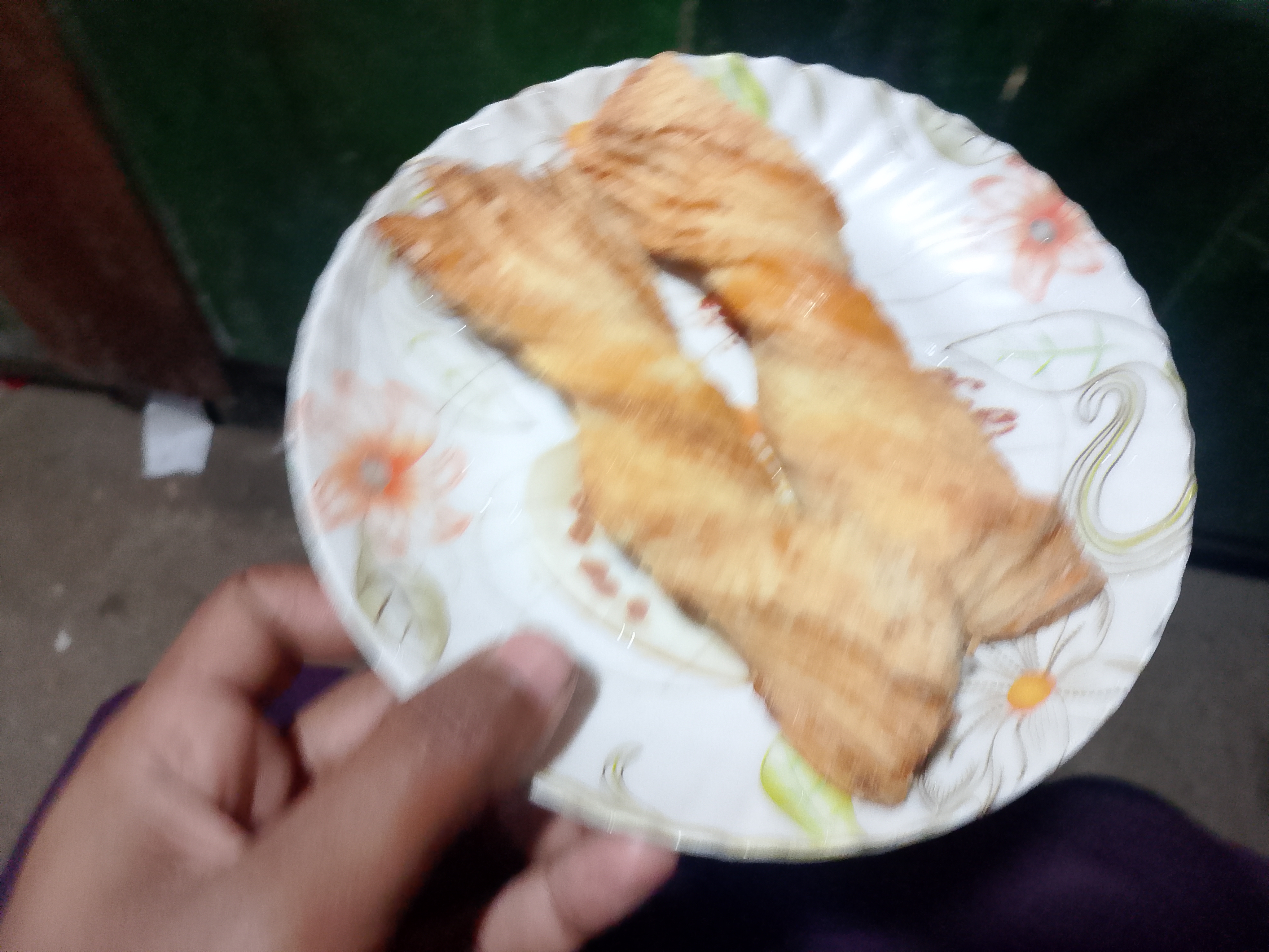 খাওয়ার জন্য লম্বা প্যাটি নেওয়া হয়েছে। এই প্যাটিগুলো খুব গরম এবং তাজা। এগুলো খুব সুস্বাদু ও মজাদার। এগুলোকে একটি হিটিং লাইনের নিচে রাখা হয় এবং সেখান থেকে গরম গরম পরিবেশন করা হয়। এটি একটি চমৎকার ও সুস্বাদু খাবার। আমরা এটা অর্ডার করে খেয়েছি। এটি একটি খুব জনপ্রিয় ও সুস্বাদু খাবার এবং আমরা এটি খুব পছন্দ করি। এই খাবারগুলো গরম গরম খেতেই সবচেয়ে ভালো লাগে, কারণ গরম অবস্থায় এর স্বাদ আরও ভালো হয়, তাই আমরা ওখান থেকে নিয়ে গরম গরমই খেয়েছি। আমরা হঠাৎ বাজারে গিয়েছিলাম, তাই সেখানেই এই খাবারগুলো খেয়েছি।