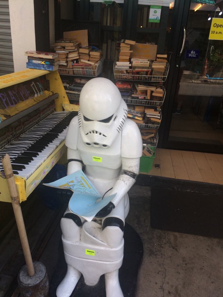 One of my favorite past times is rummaging through old bookstores. There's no telling what treasures you might find deep in their bowels (no pun intended). This particular one (the name of which escapes me) was especially charming due to this random storm-trooper. I stumbled across it when I was exploring old-town in Chiang Mai.