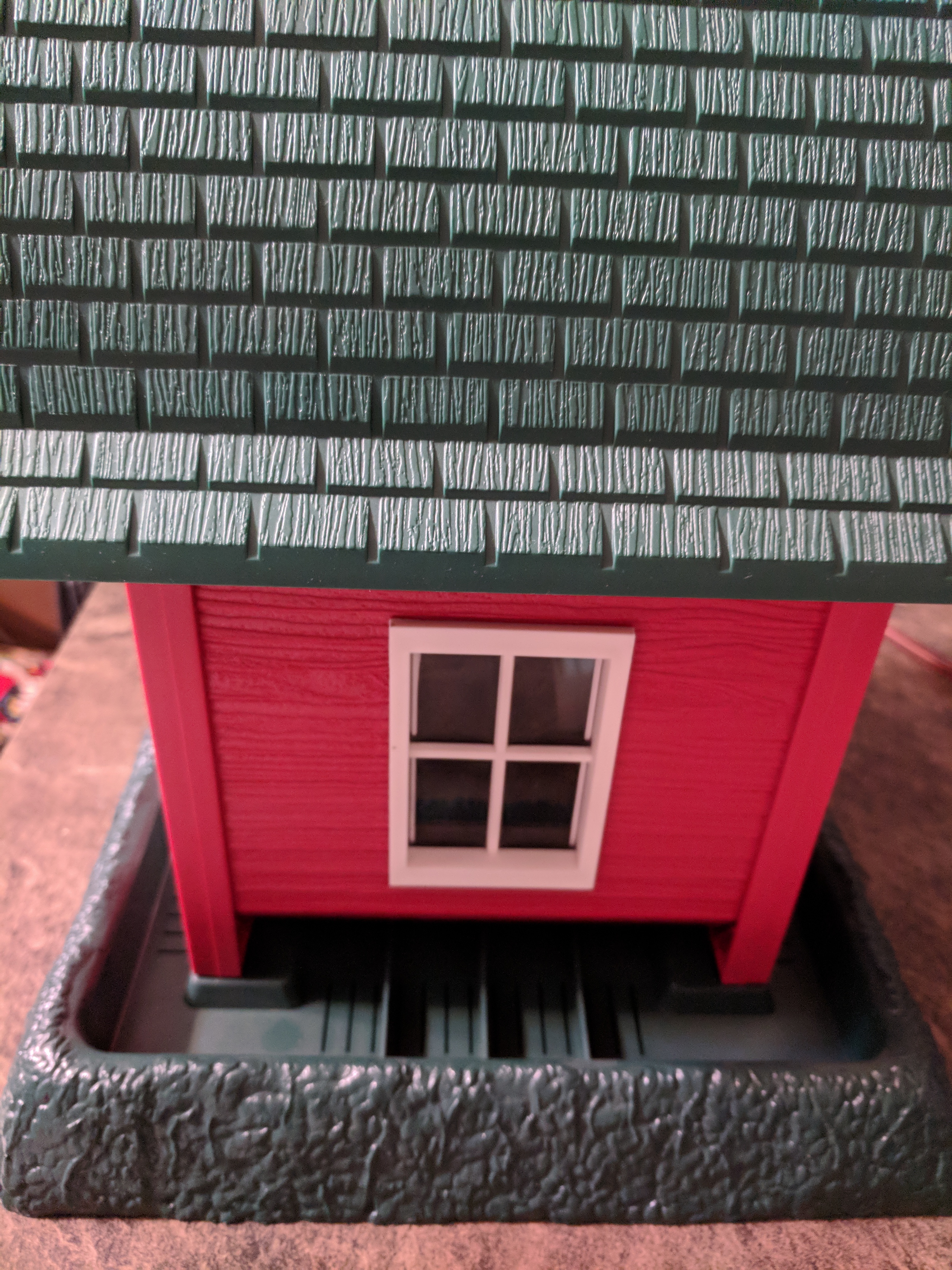 The barn even has a nice window so you can see how much feed is left and a pretty decent basin for the birds to eat out of.
