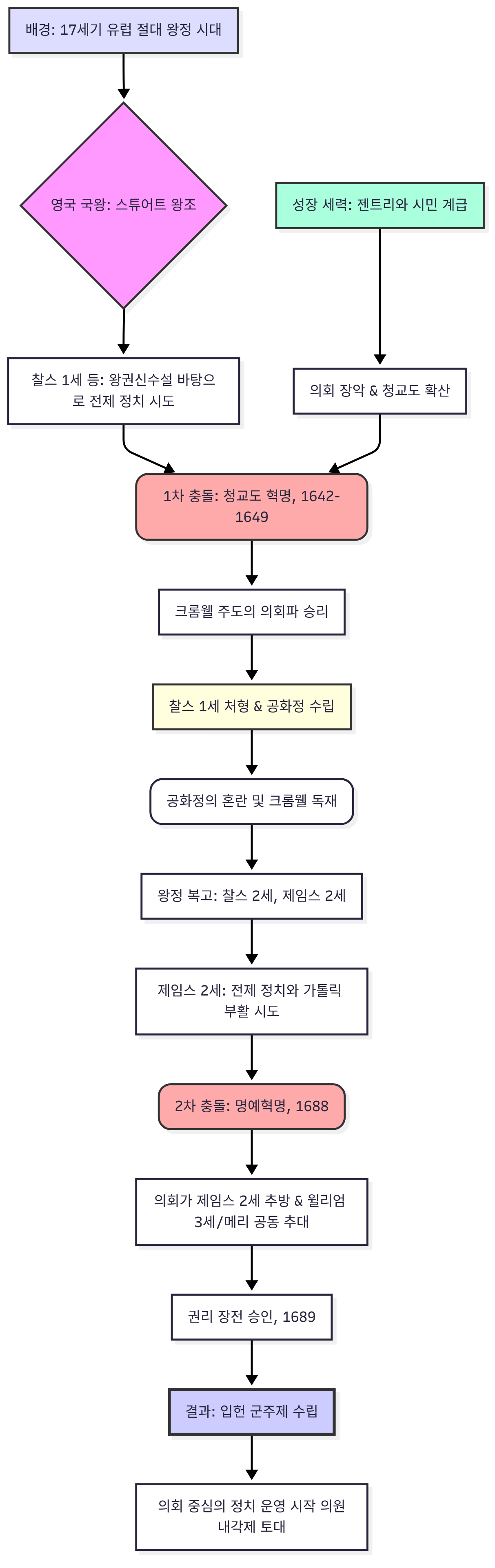 16세기 유럽의 신항로 개척으로 아메리카 대륙의 은과 새로운 작물이 유입되면서 가격혁명과 인구의 급격한 증가가 발생했고, 이로 인해 상공업이 발달함에 따라 시민계급(젠트리와 상인)의 경제력이 급성장 했다. 영국을 비롯하여 많은 나라들이 절대왕정 체제를 유지하고 있었지만 영국에서 가장 먼저 혁명이 일어난 이유를 생각해보면 영국은 마그나 카르타(대헌장)에 의한 의회의 재정 승인권이 잘 운영되고 있었다는 점이다. 즉, 포르투칼이나 에스파냐와 달리 영국은 국왕에 대한 의회의 견제가 견고하게 작동하고 있었고 국왕은 의회를 완전히 무시할 수 없었다.