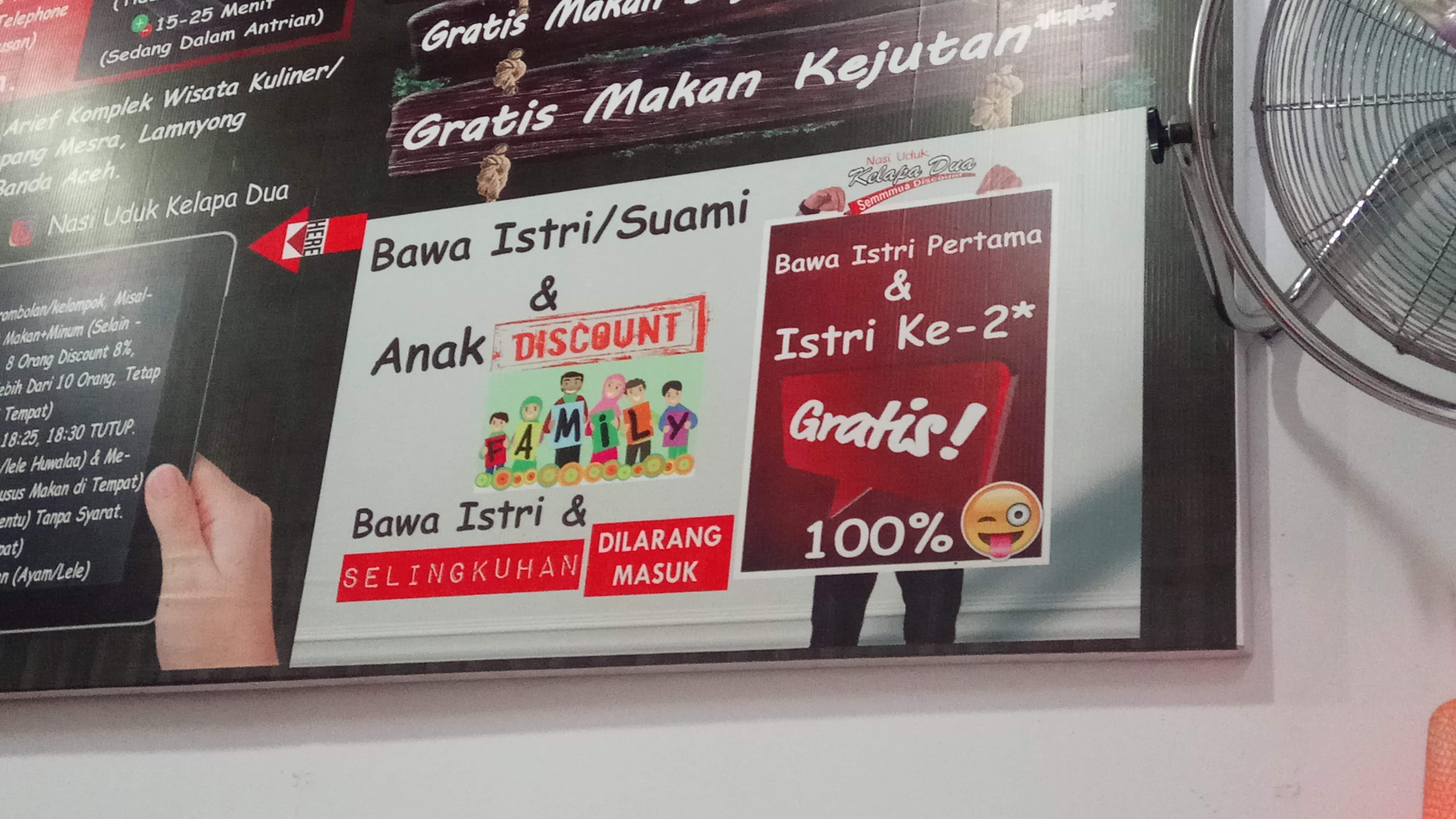 Terakhir, ada juga tantangan dalam kebersamaan yang dibuat salah satu gerai makanan cepat saji di kota ini, seperti dalam foto di bawah ini. Siapa yang tertantang silahkan uji kebersamaan anda, kalau belum tahu alamatnya , kontak saya biar saya kasih tahu tempatnya.