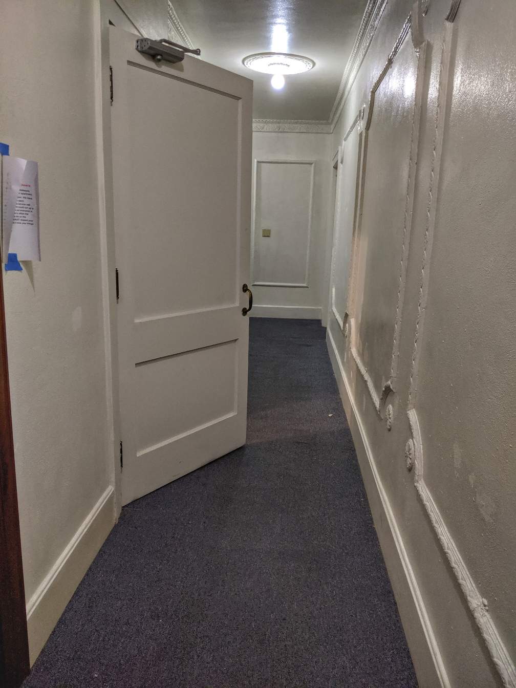 pushing open creaky old white doors that opened into long eerily silent hallways..