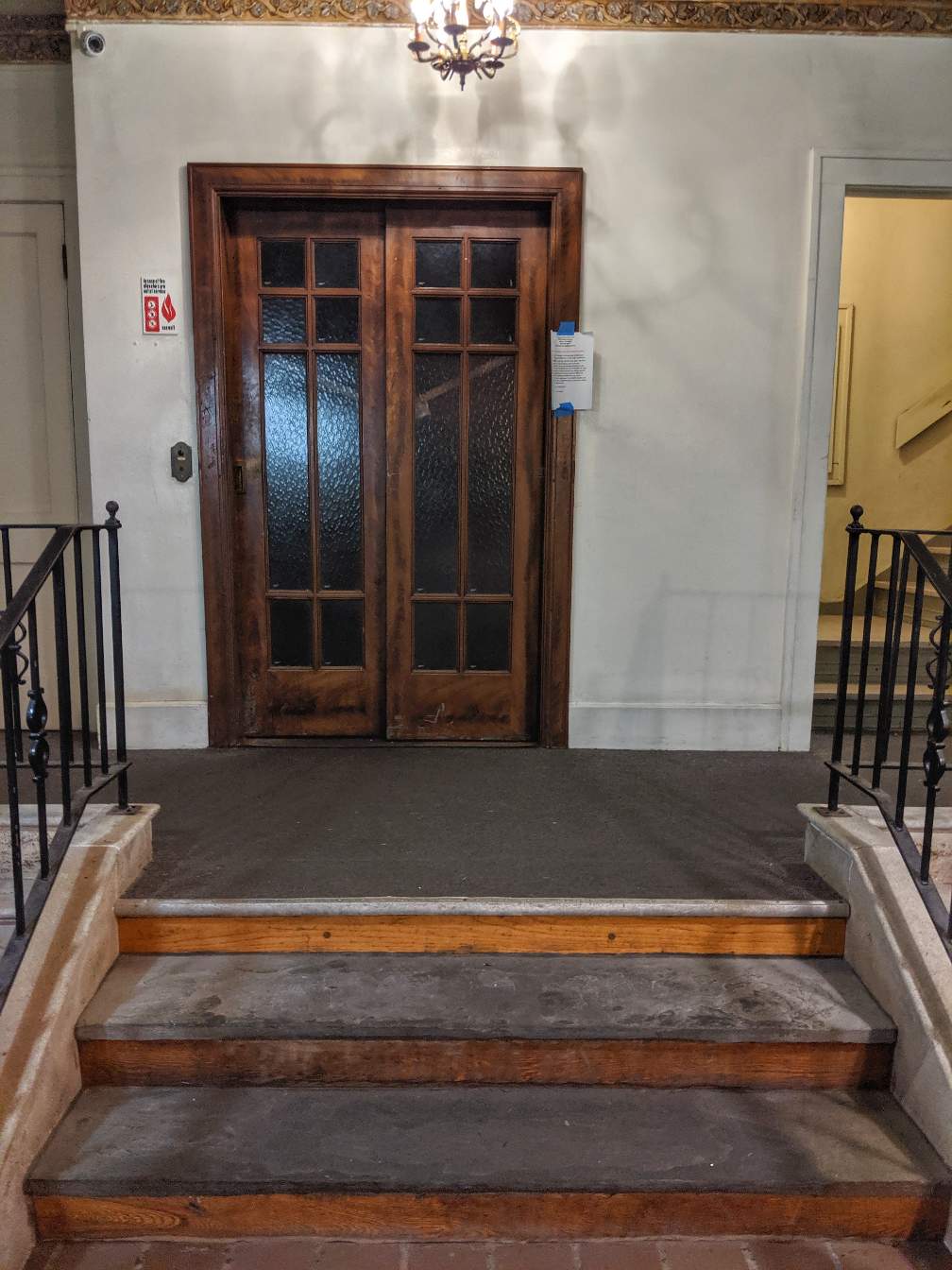 ...yeahhhh, no. Those brown doors are for an elevator that hasn't been operational since probably the sixties.
