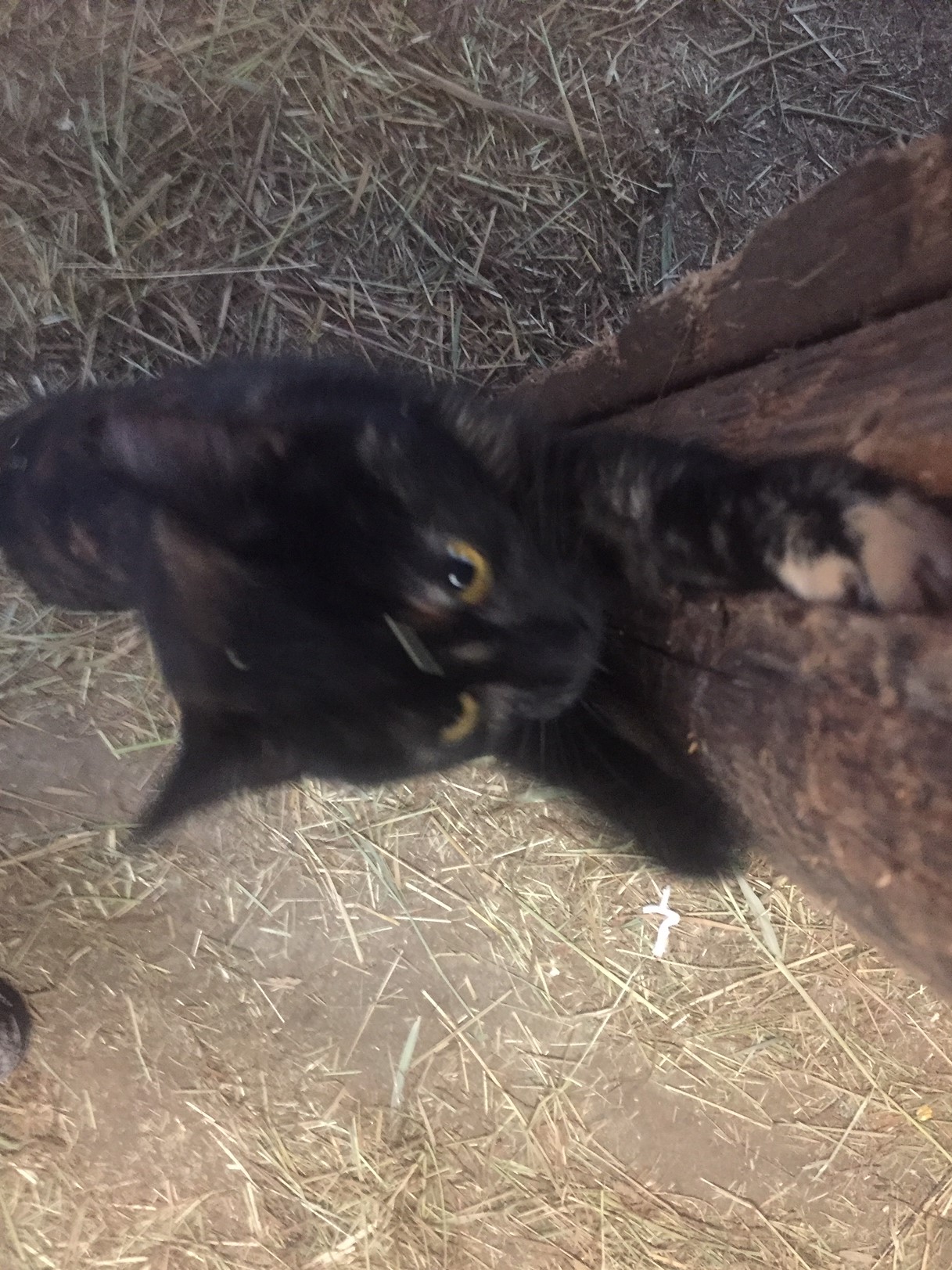 As we arrived home I packed her into the house to show her to my hubs. He's a sucker for animals, especially abandoned ones, so we gave ol Kittles a bunch of loves and cat food. It was then that she got to be introduced to her new home. I have five kittens around the same age of Kittles in my barn. They have a heated room, water, and all the food they can eat in the 30X60 building of cat entertaining delight.